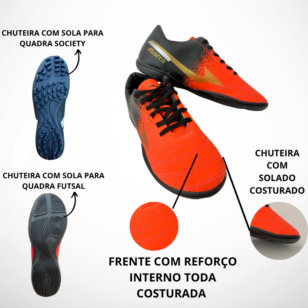 Chuteira MARRA Adulto Society e Futsal Leve Confortável Antiderrapante Trava Baixa Solado Resistente