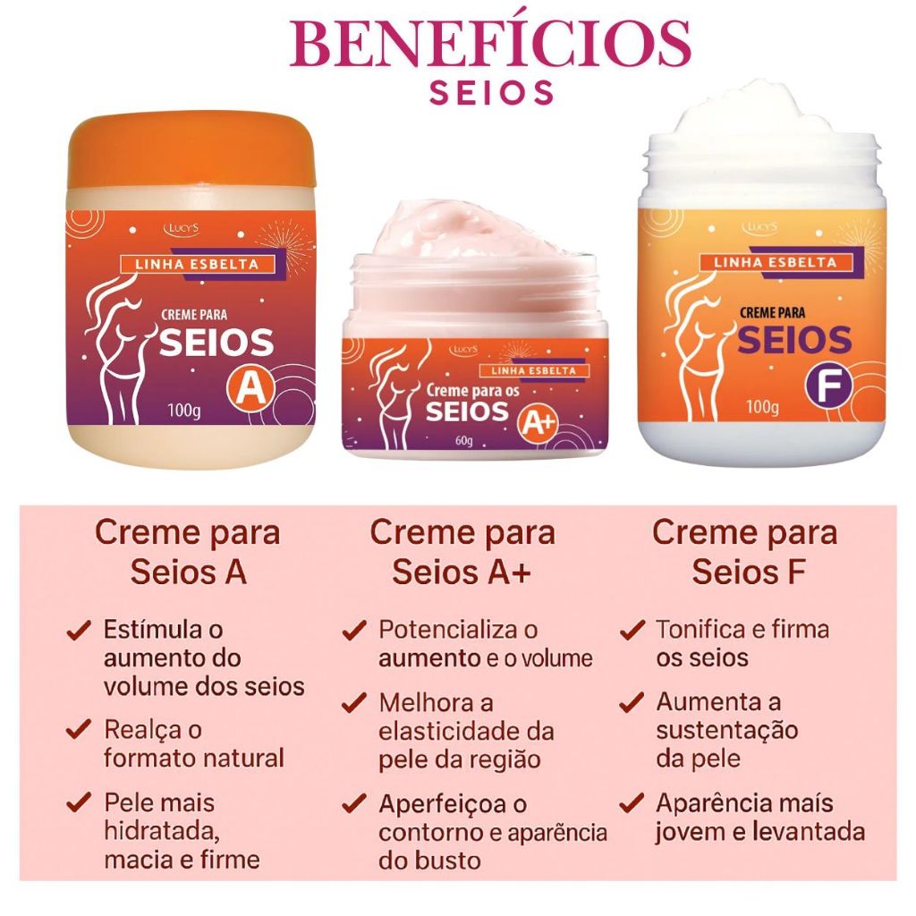 Kit Creme Seios Aumentar e Firmar - Estimula o Crescimento, Evita Flacidez e Tonifica os Seios 100g