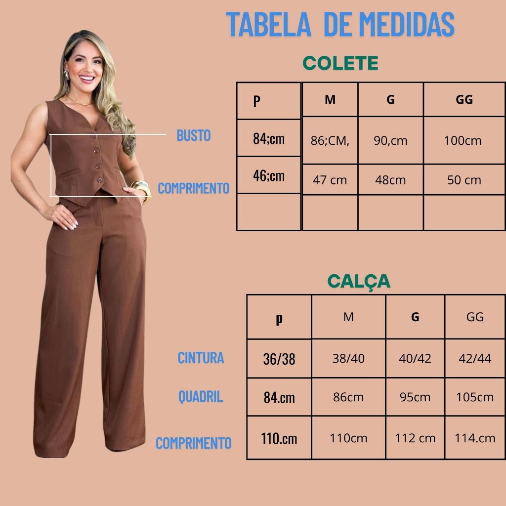 CONJUNTO FEMENINO COLETE +CALÇA EM TECIDO ALFAIATARIA SUPER LUXO