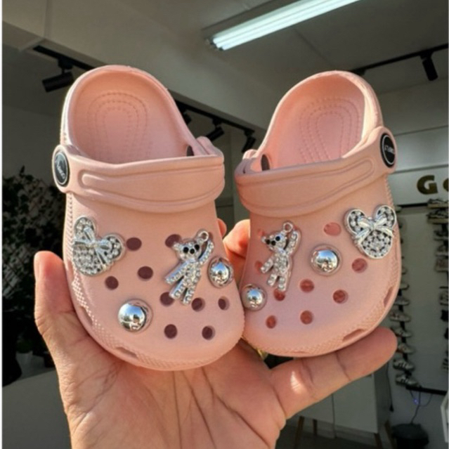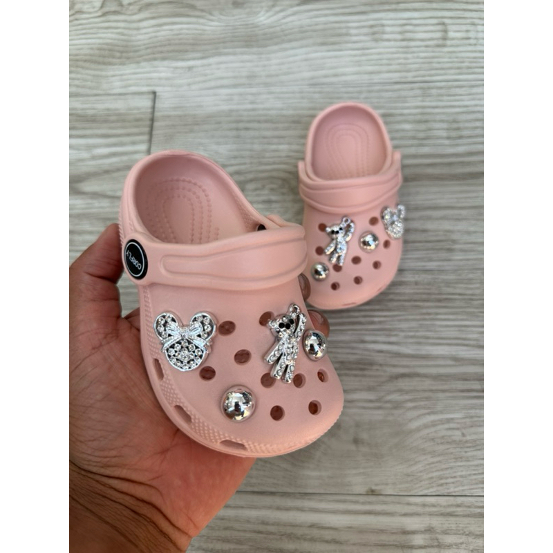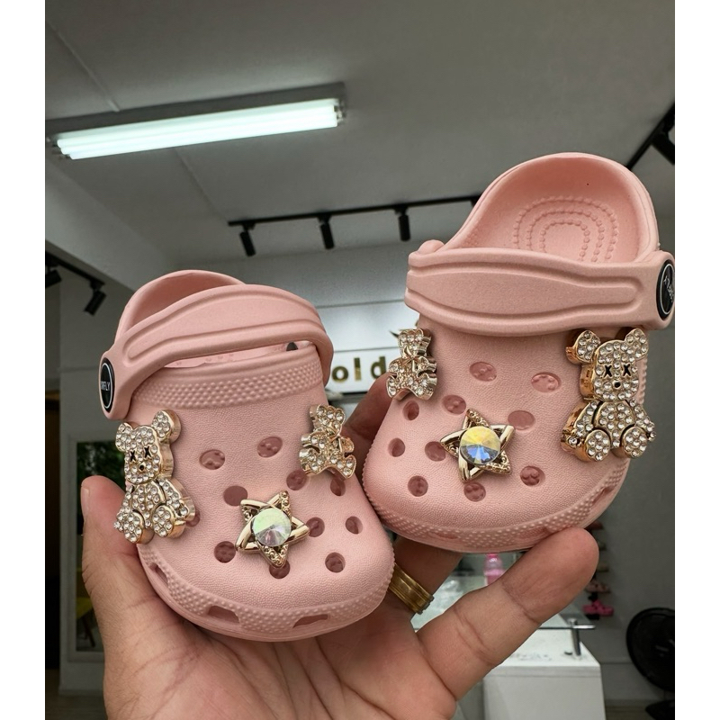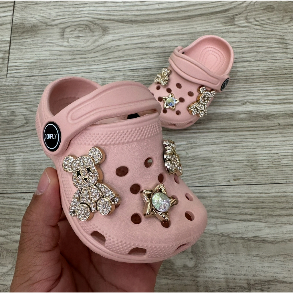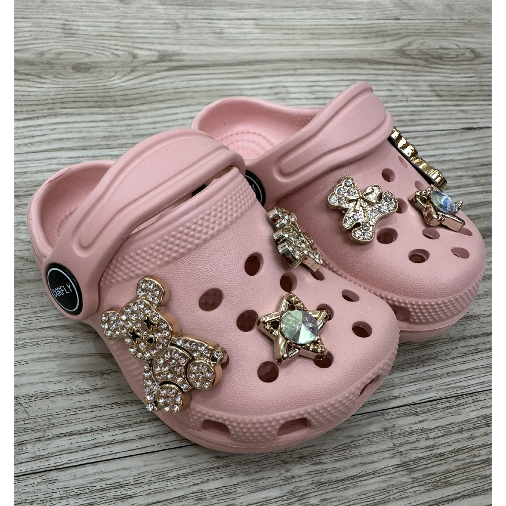Sandália Babuche menina com 6 Pingentes Pins luxo Urso