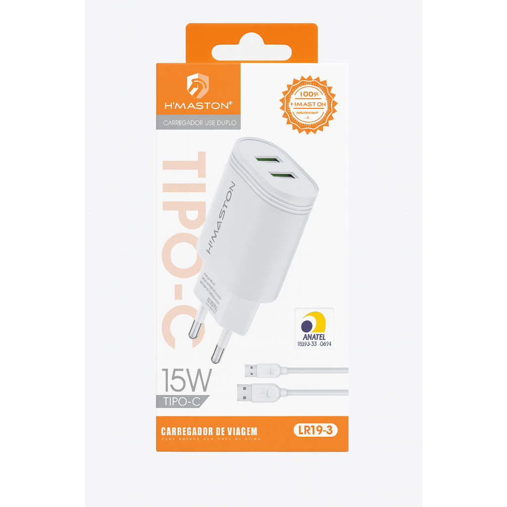 Carregador Tipo C H’Maston com Cabo Tipo C – 2 Portas USB - LR19-3