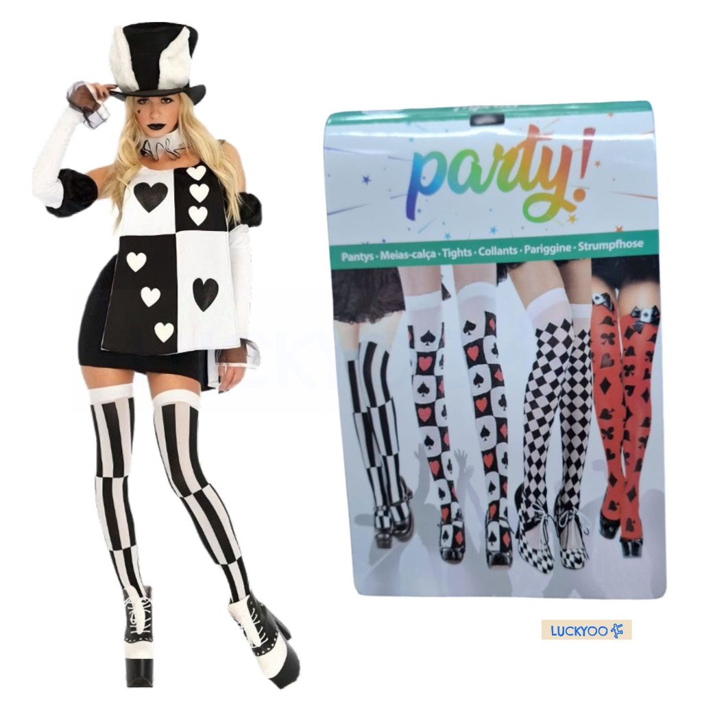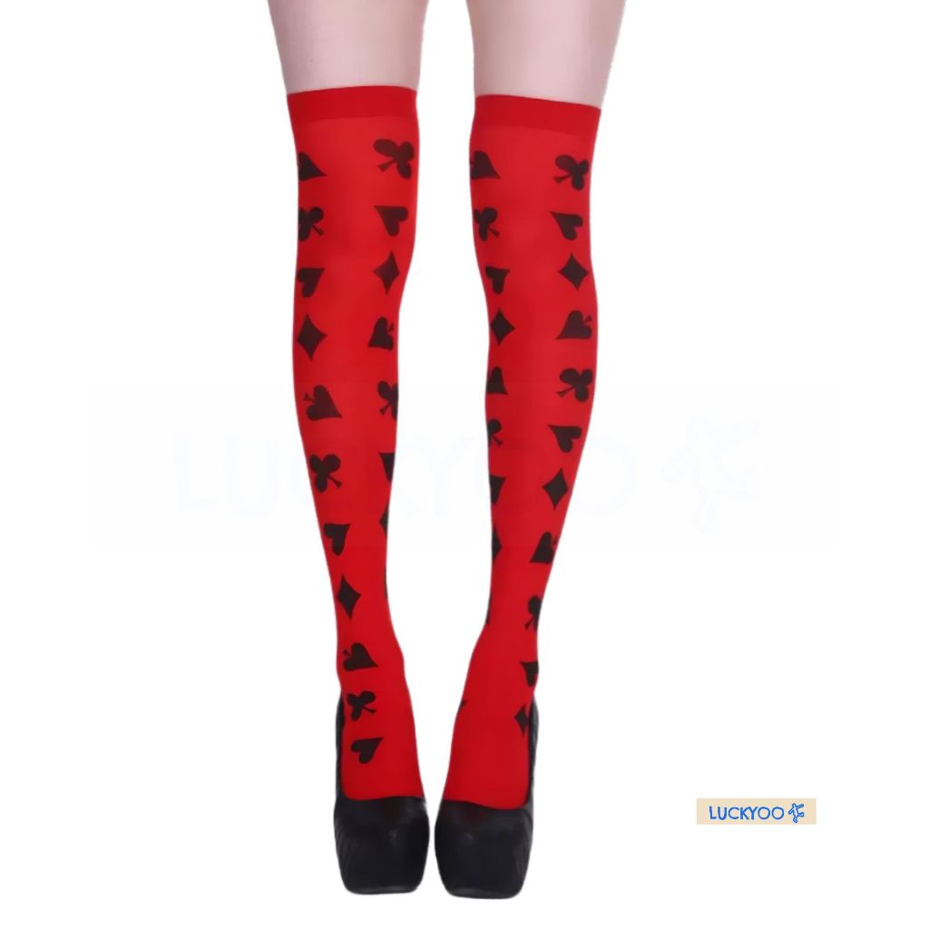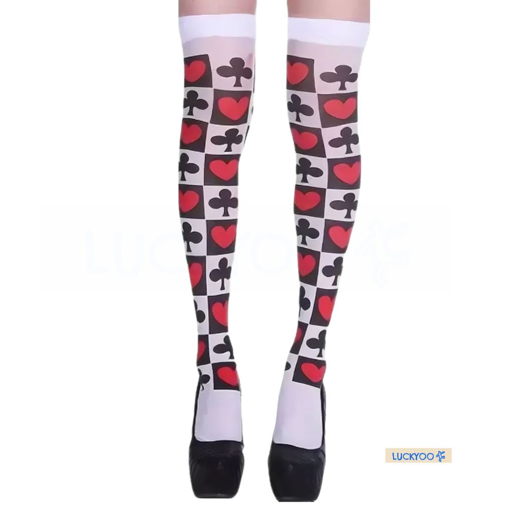 Meia 7/8 Estampada Naipes Rainha de Copas Listrado Alice Fantasia Cosplay Halloween Carnaval e Festas Geek