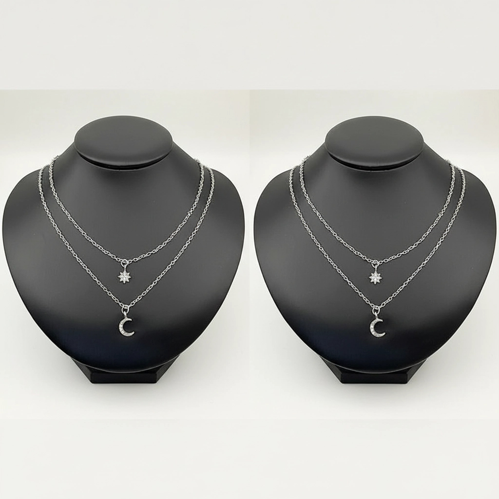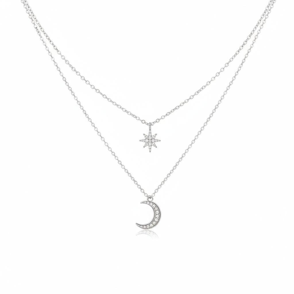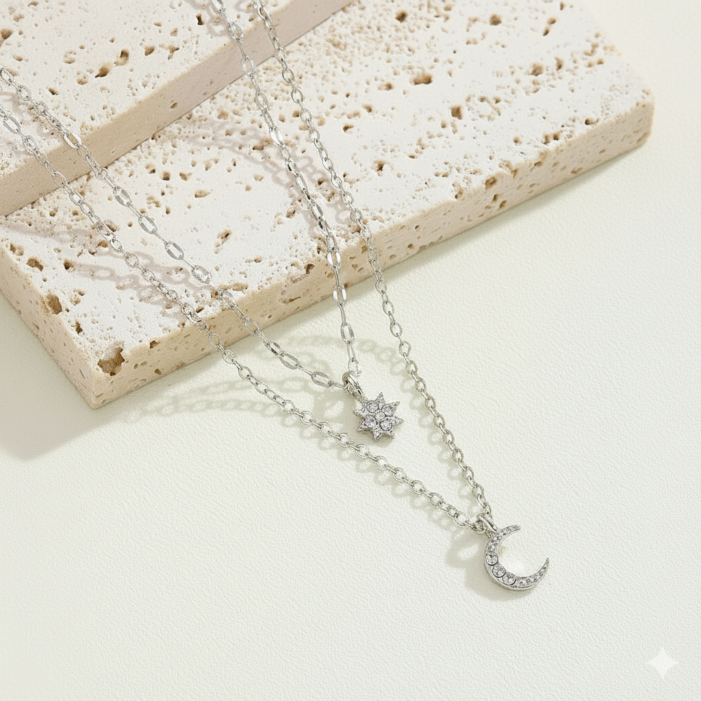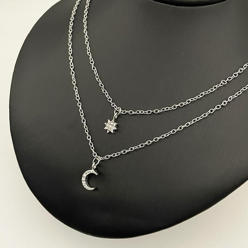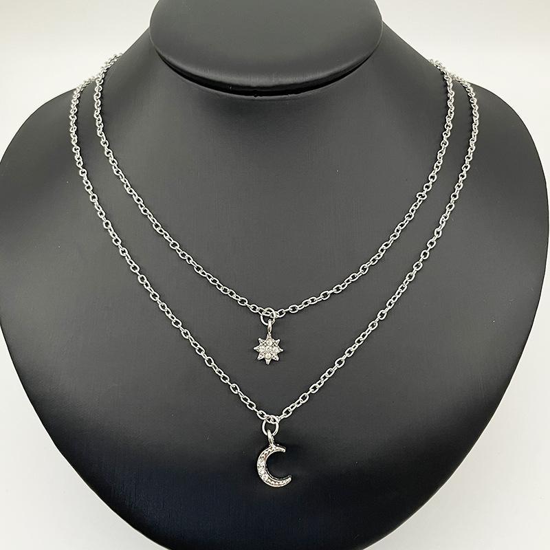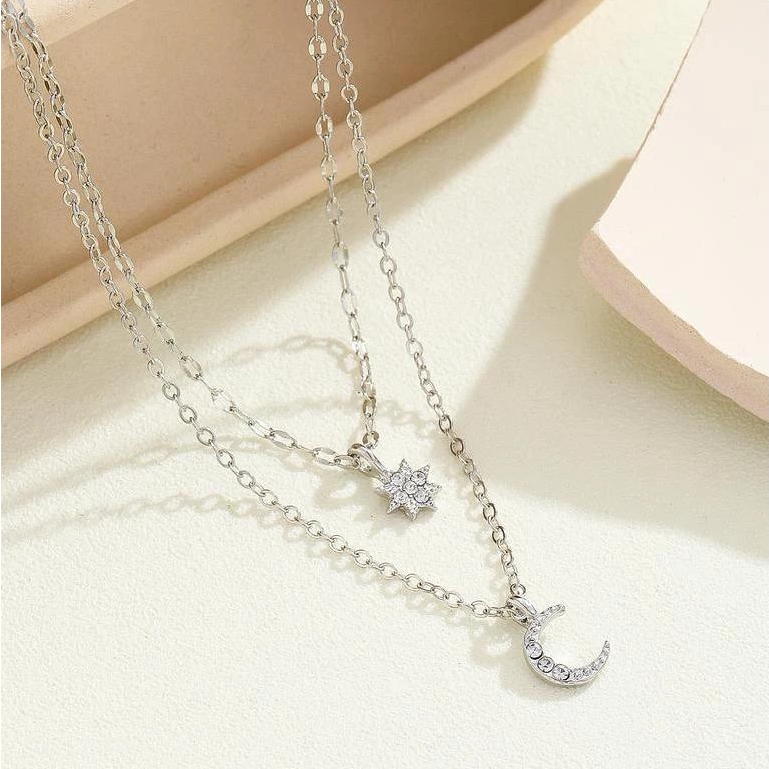 Colar Corrente Dupla Camada Lua e Estrela Feminino Elegante Leve Confortável Cordão
