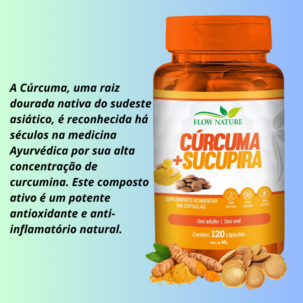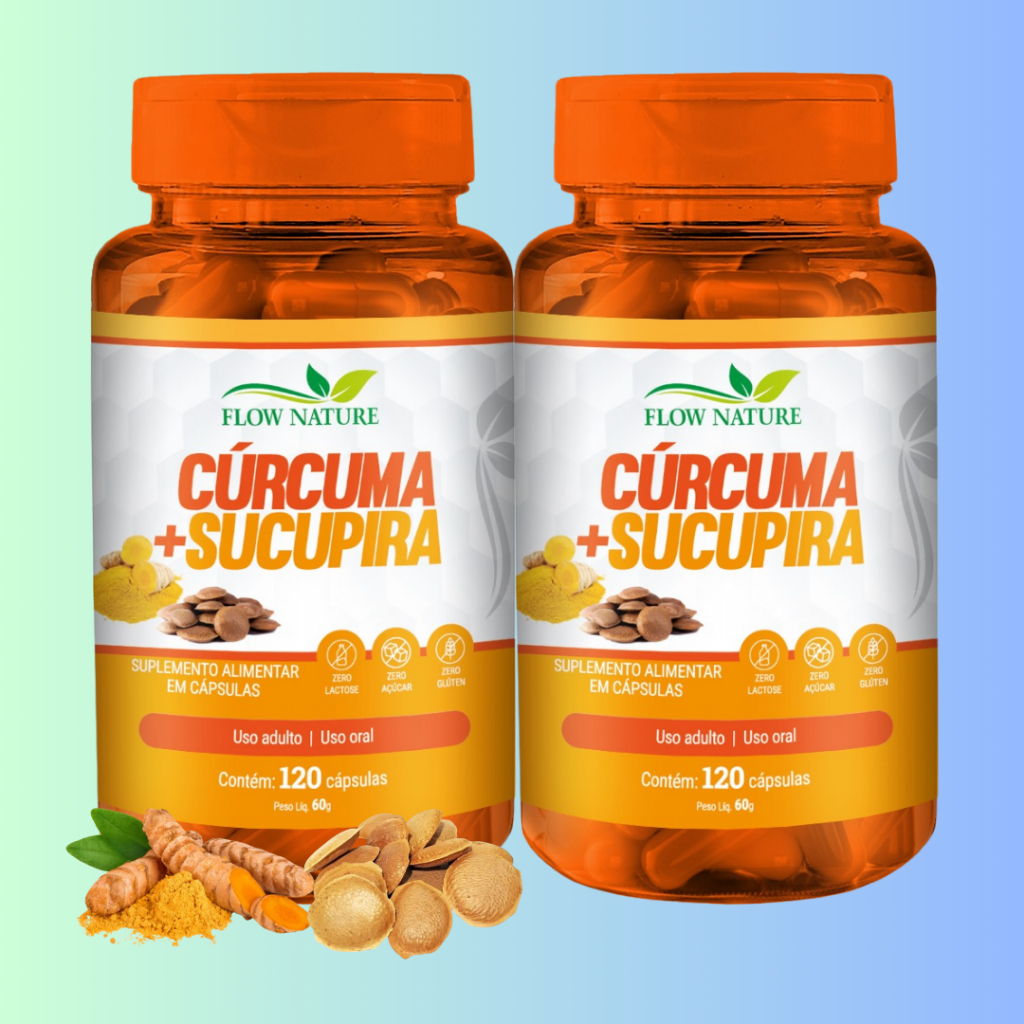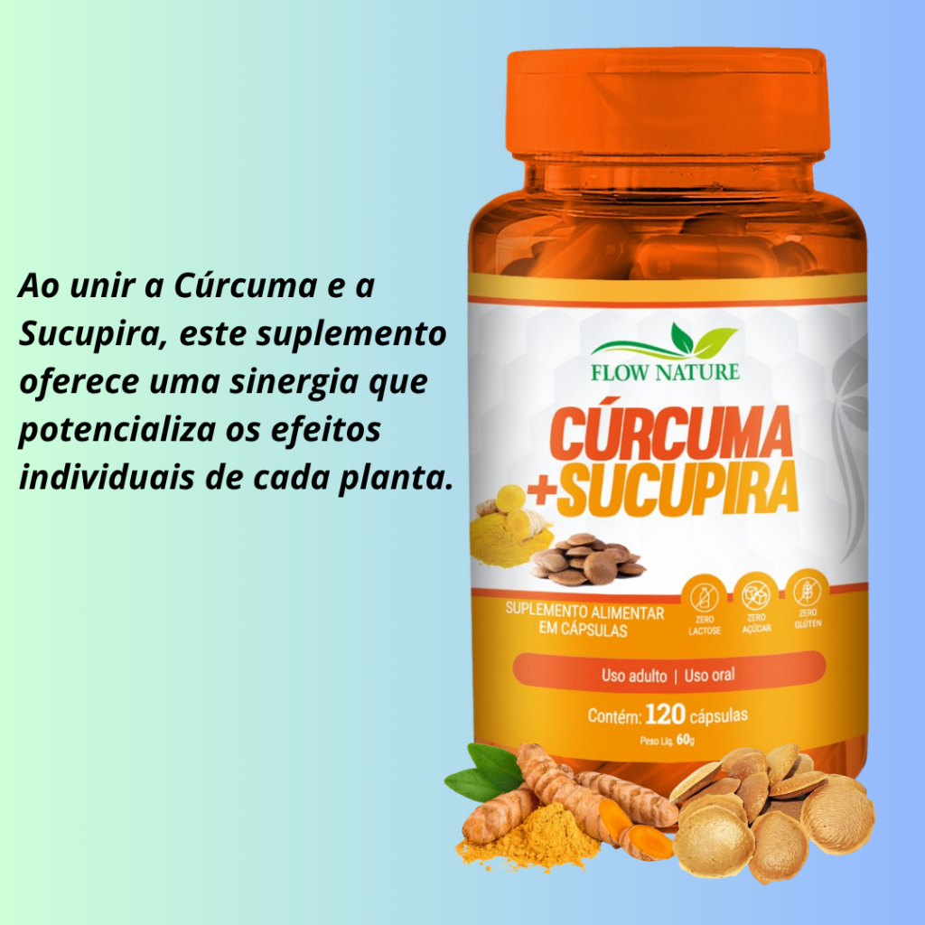 Cúrcuma Com Sucupira 120 Cápsulas de 500 mg - Composto Natural - Kits Com 1, 2 e 3 Potes