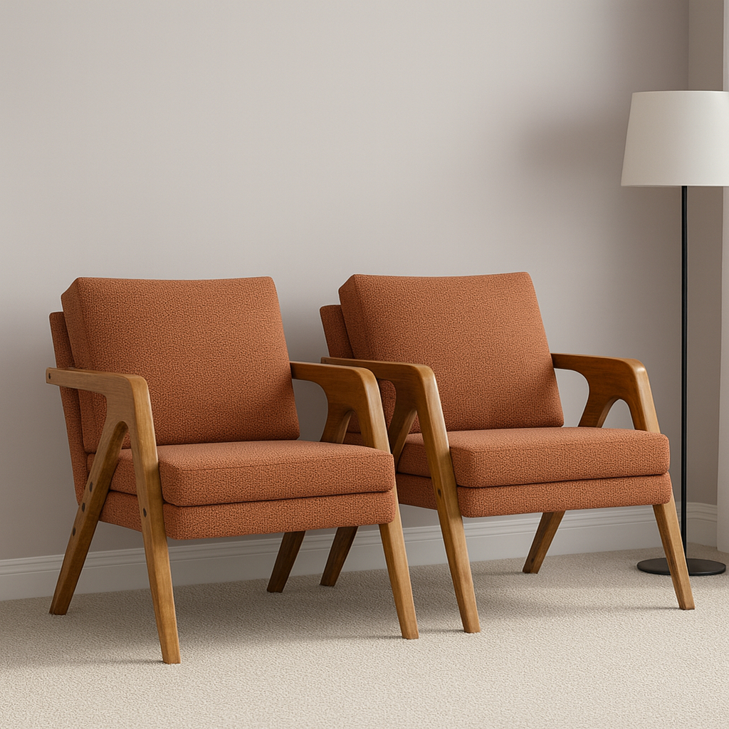 Kit 2 Poltronas Mona Sala de Estar Luxo Estofada Linho Bege Decorativa Moderna com Pés de Madeira