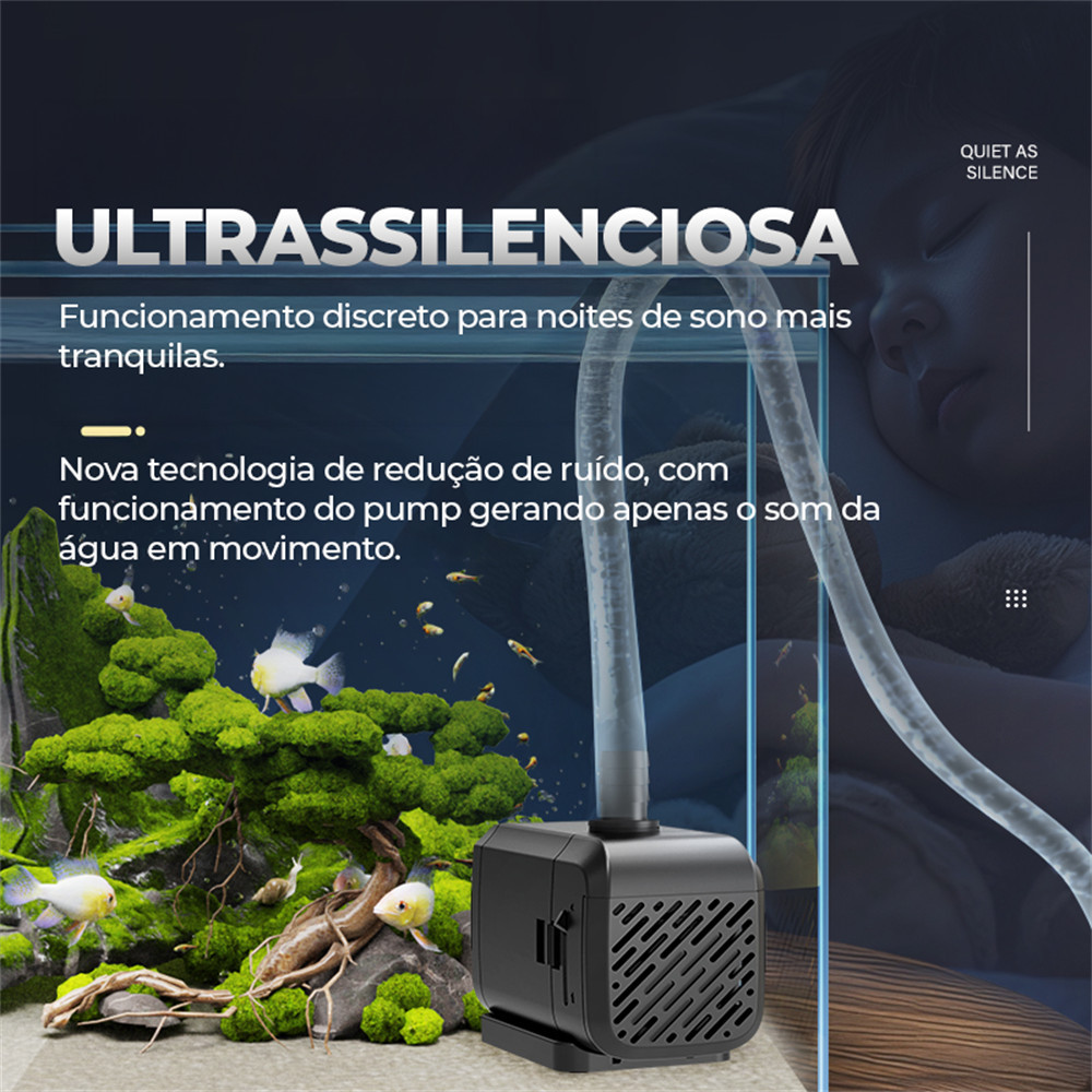 220V / 110V Bomba Submersa Bombinha Motor Para Aquário Fonte Água Bebedouro Pet 1600l/h
