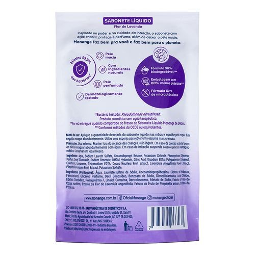 Refil Sabonete Líquido Monange Flor de Lavanda 400ml