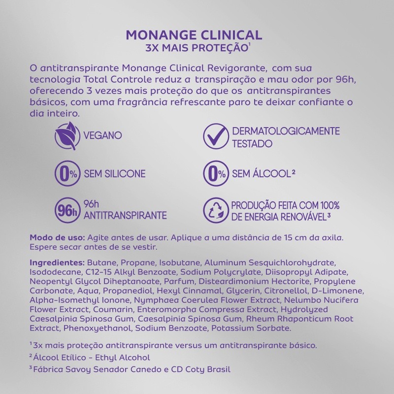 Kit Desodorante Monange Clinical Revigorante 150ml - 6 UN