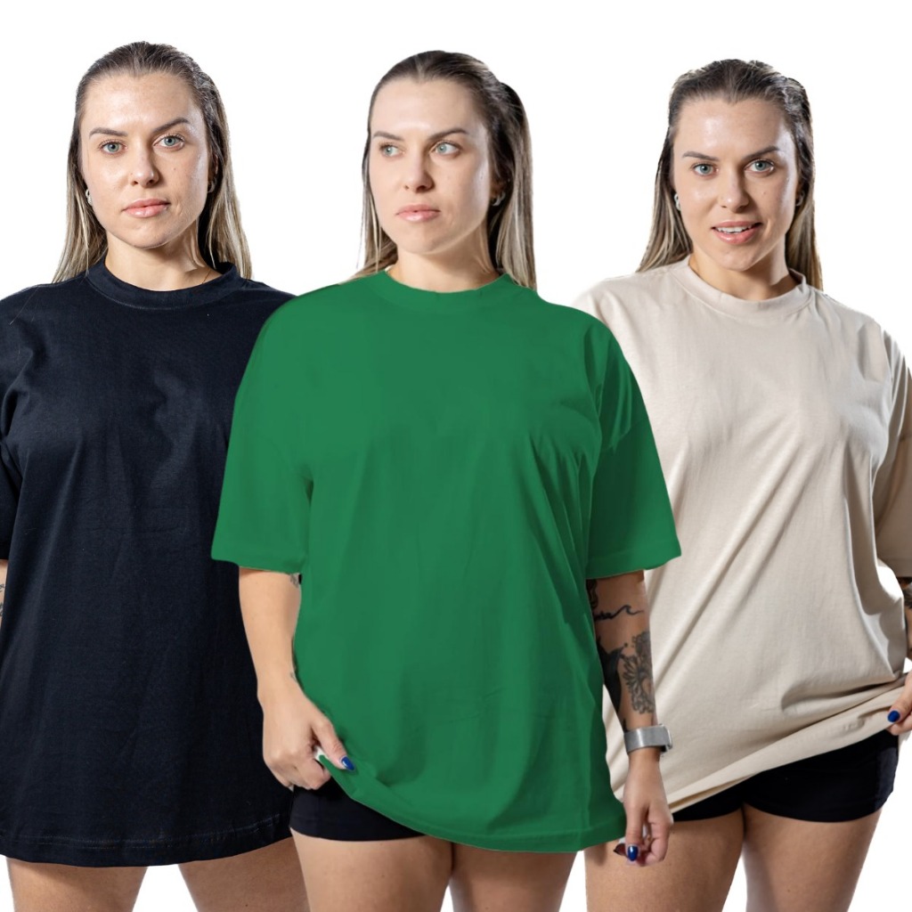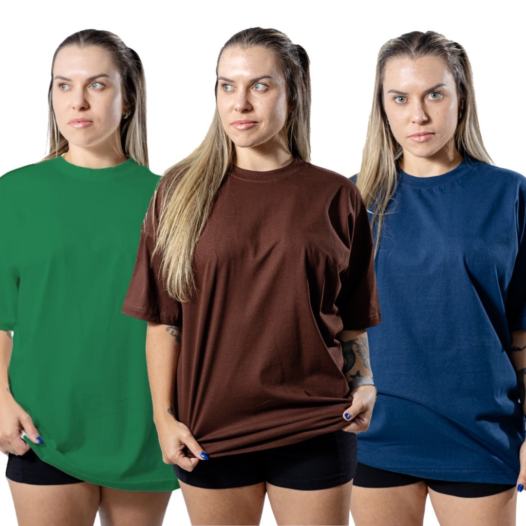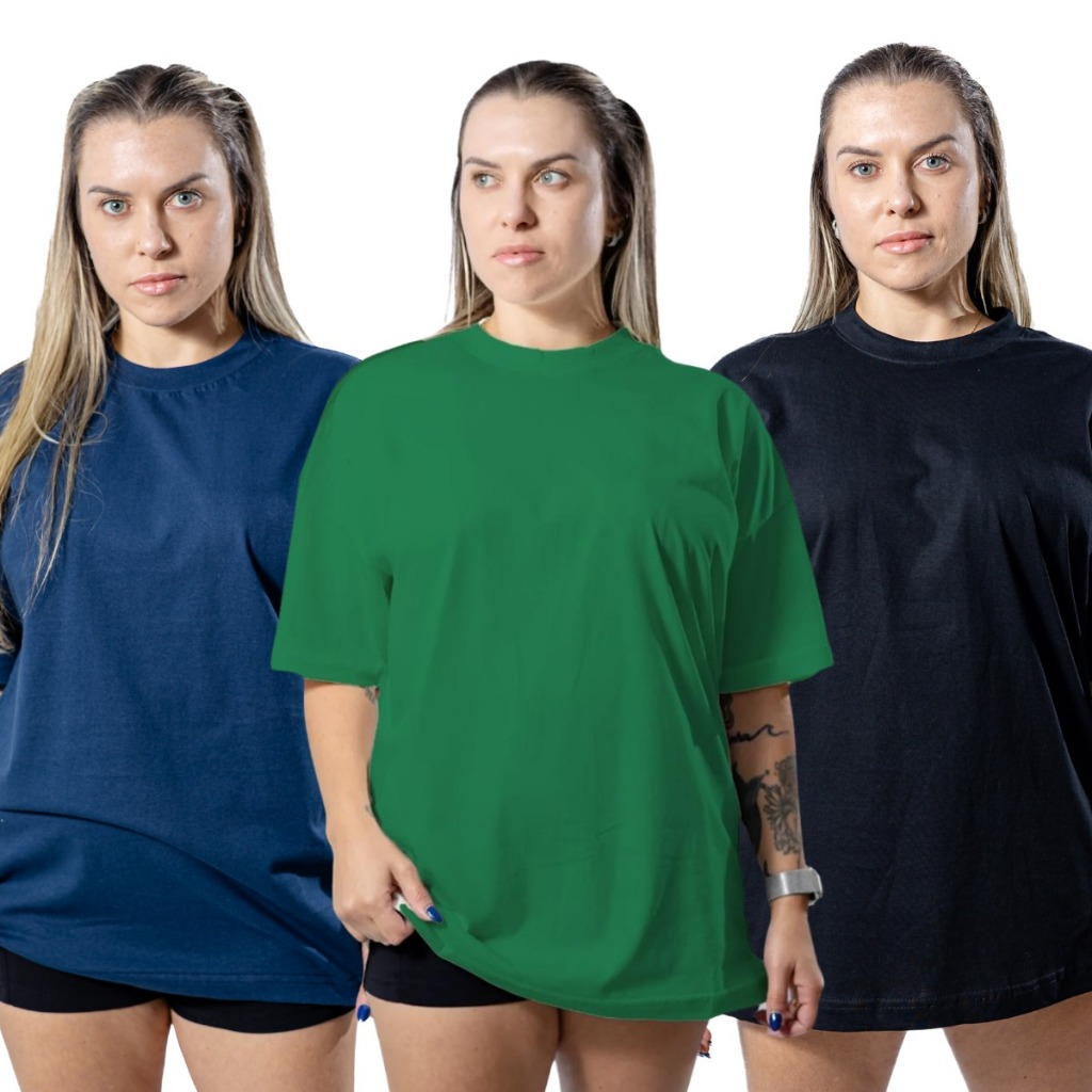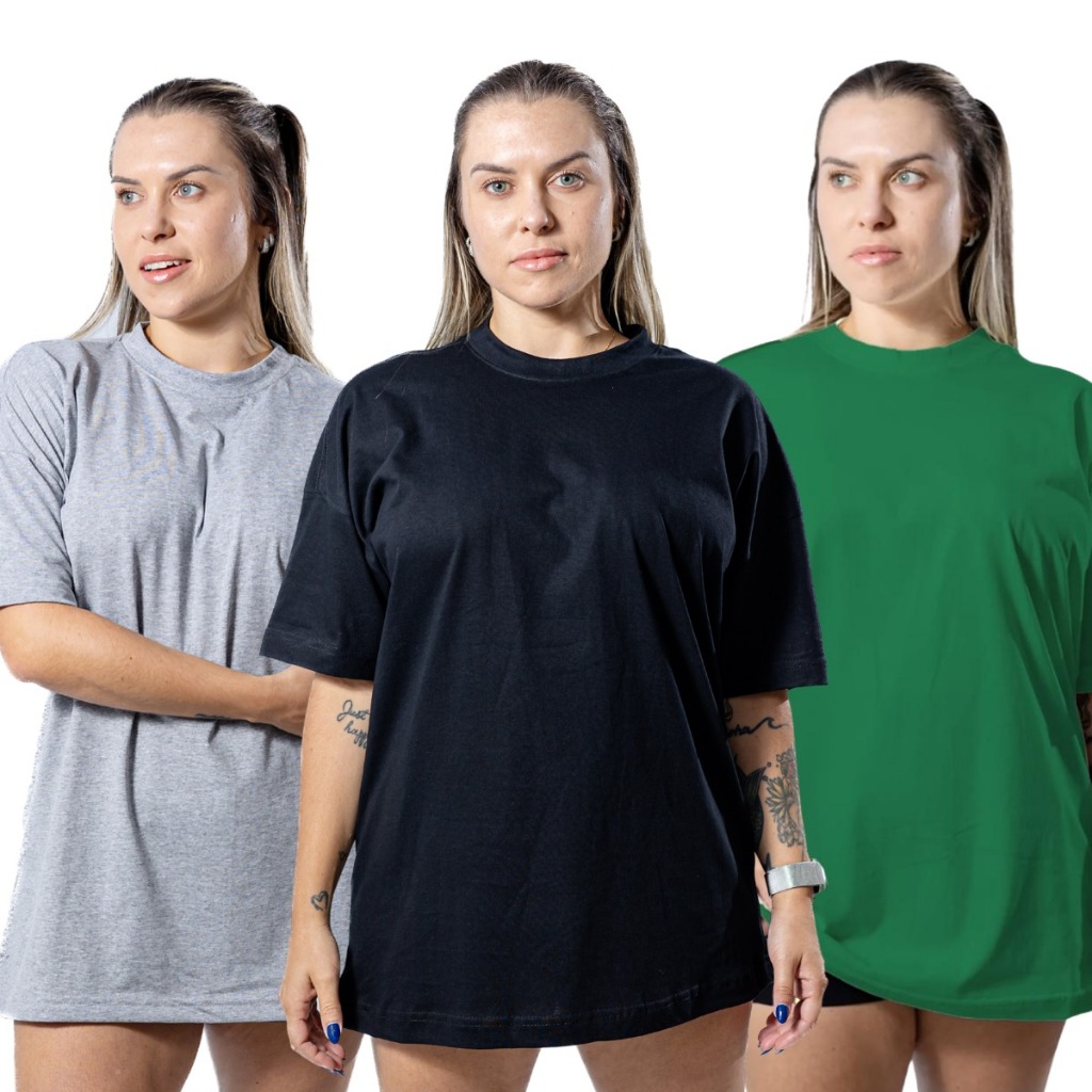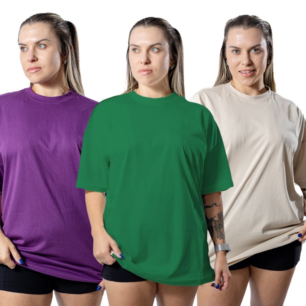 Kit 3 Camiseta Oversized Feminina Premium 100% Algodão Conforto E Estilo Para Academia & Casual