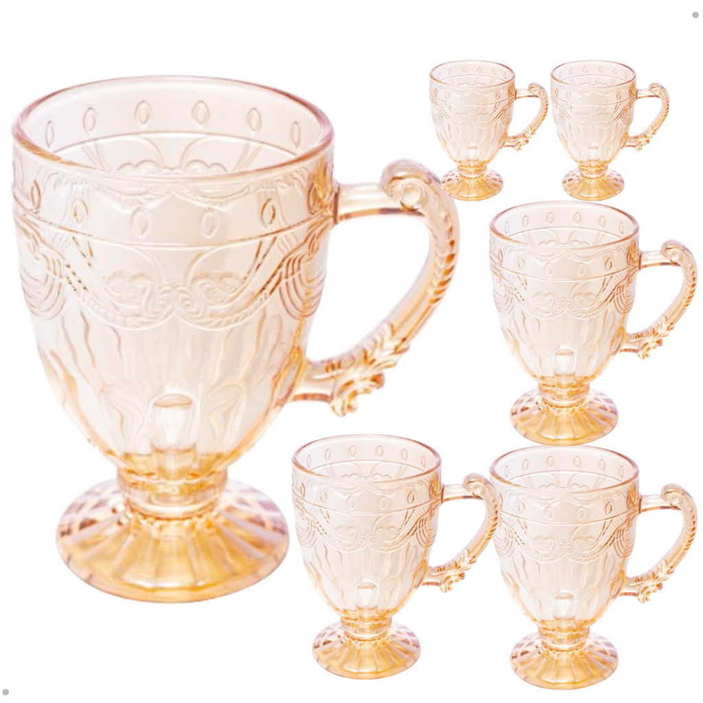 Conjunto 6 Canecas C/Pé Vidro Cristal Imperial Âmbar 190ml ke home