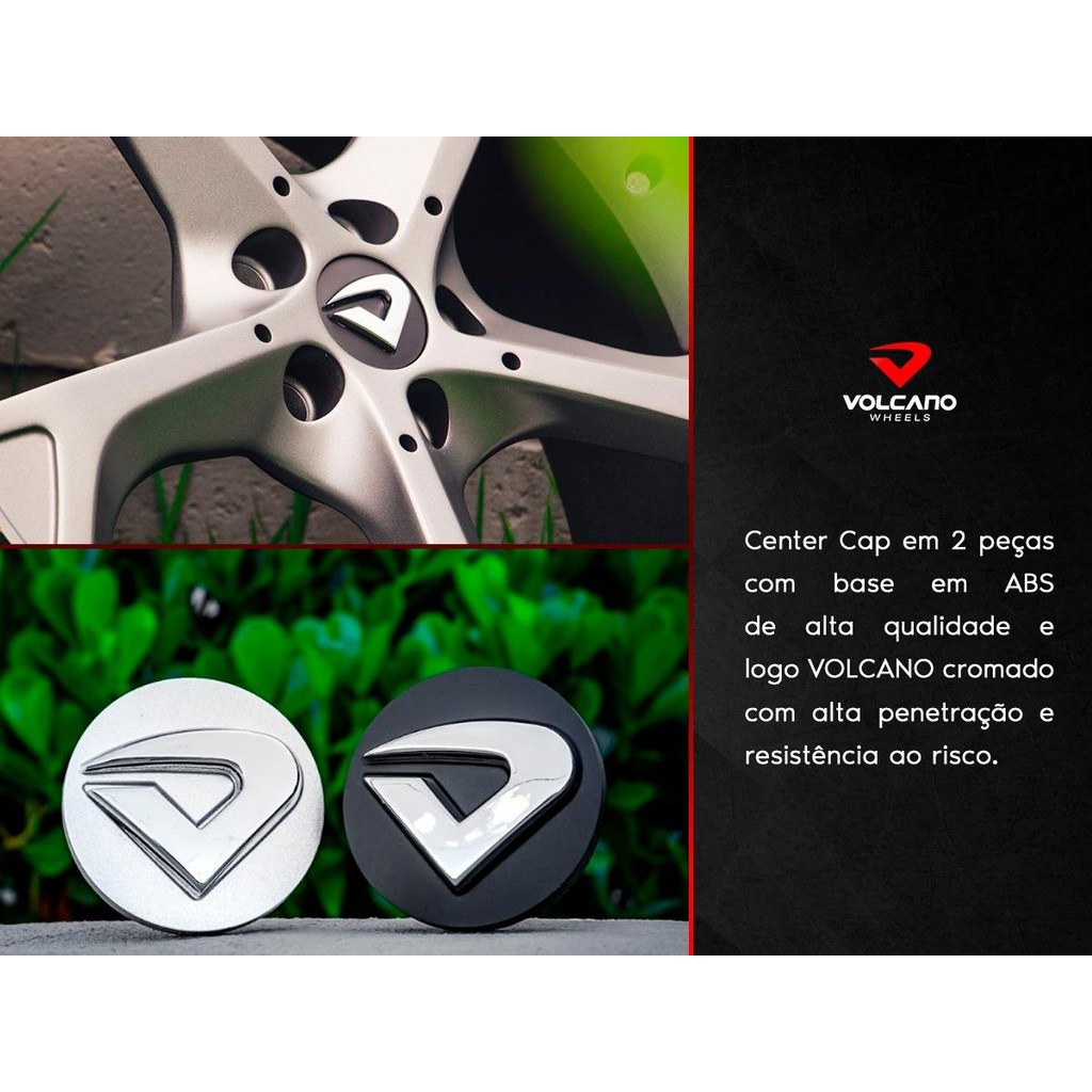 2 Jogos de Calotas Volcano 3D 4 Prata e 4 Preta + Brindes