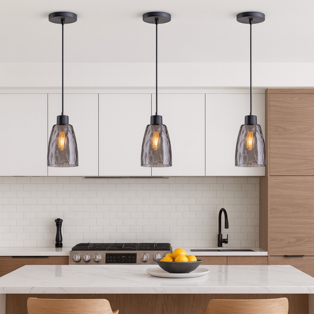 Luminária Pendente Riggo Fumê Vidro 1 Lâmpada Cozinha Bancada E27 Bivolt