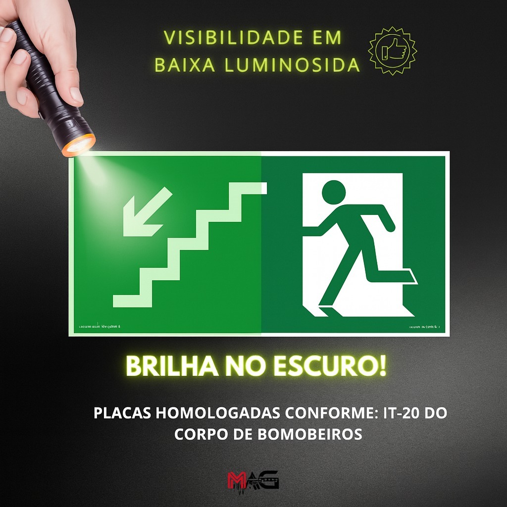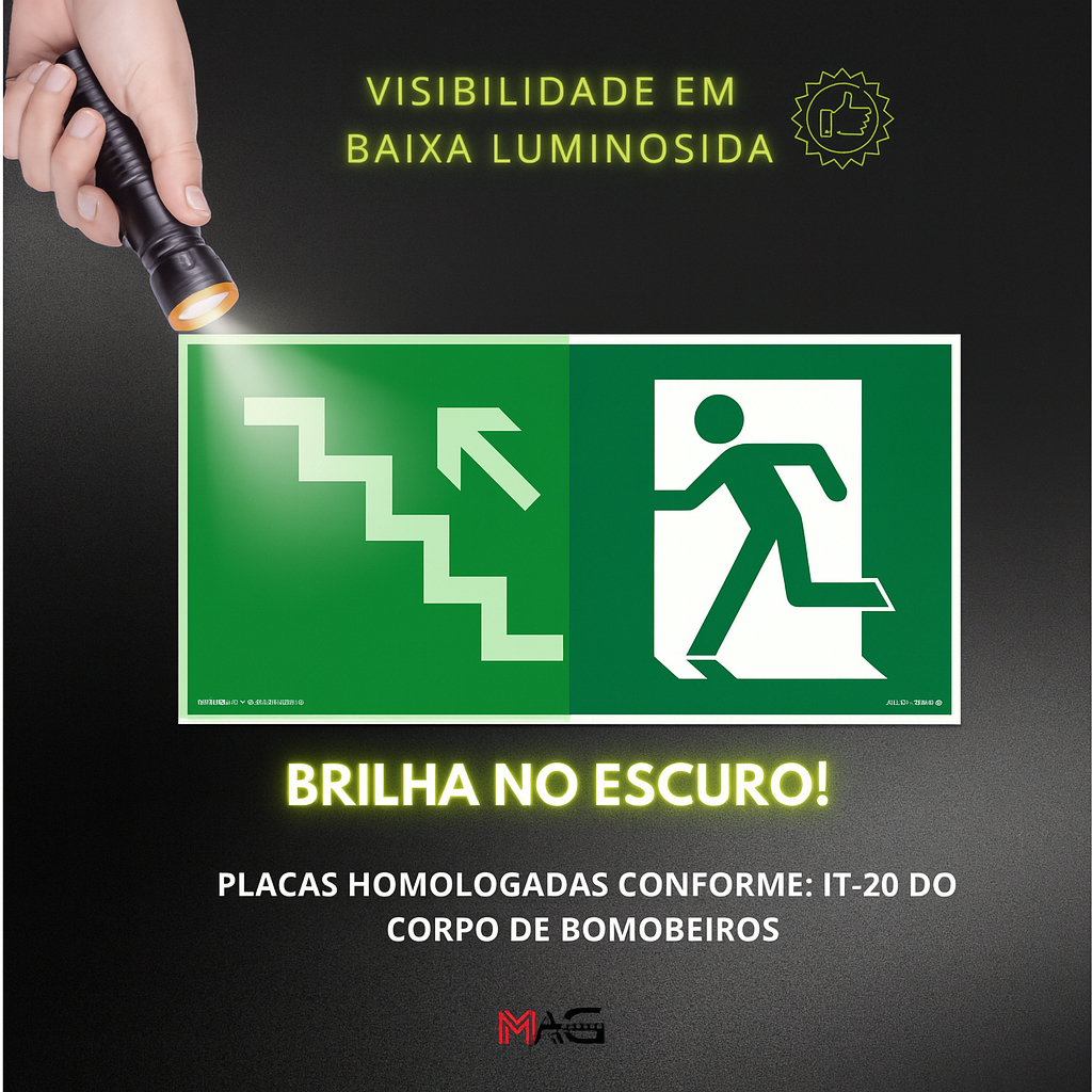 Monte seu Kit Placa de Sinalização Fotoluminescentes/Proibido Estacionar/Perigo Inflamável/Rota de Fuga