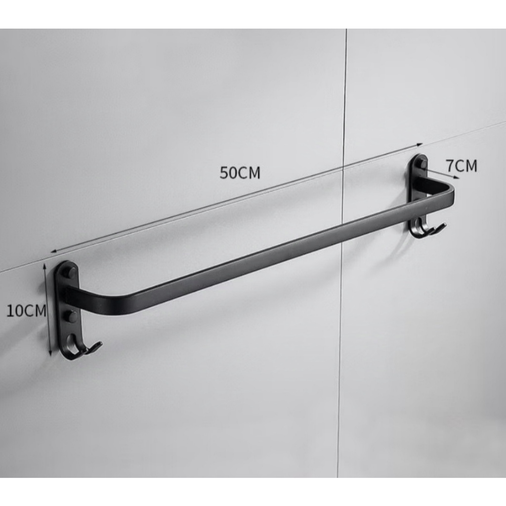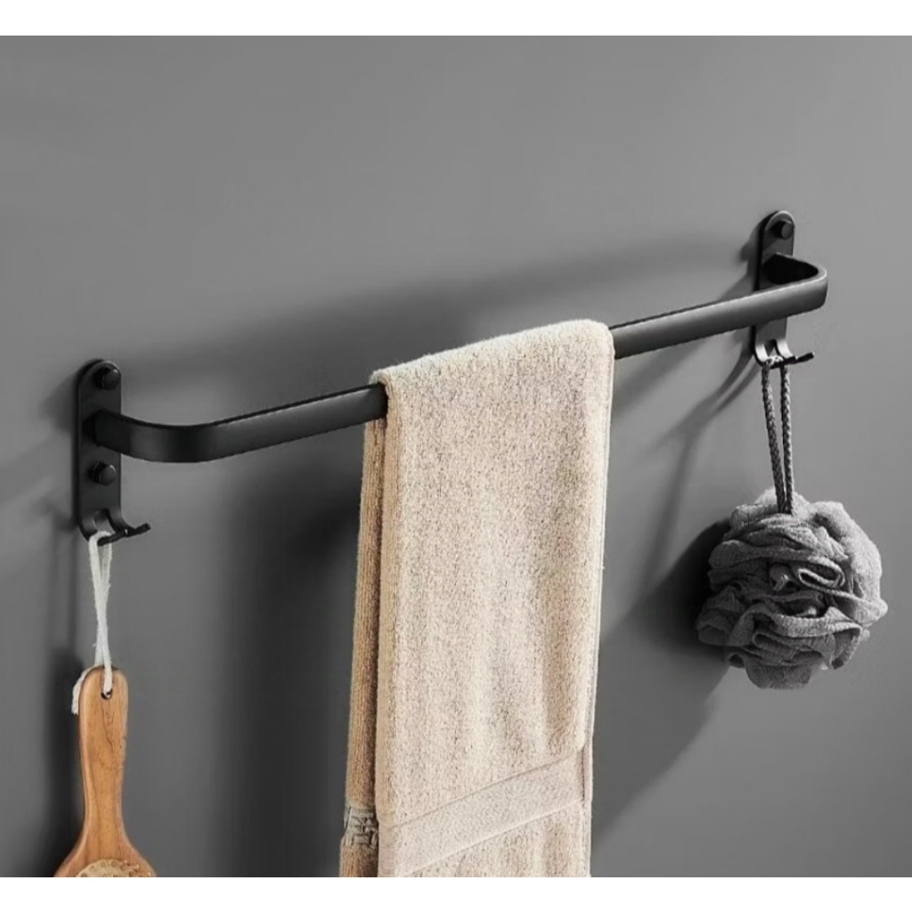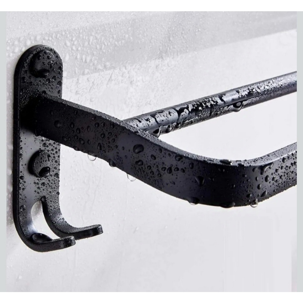 Suporte de Toalha de Parede com Ganchos - 50cm | Toalheiro de Alumínio Preto Fosco