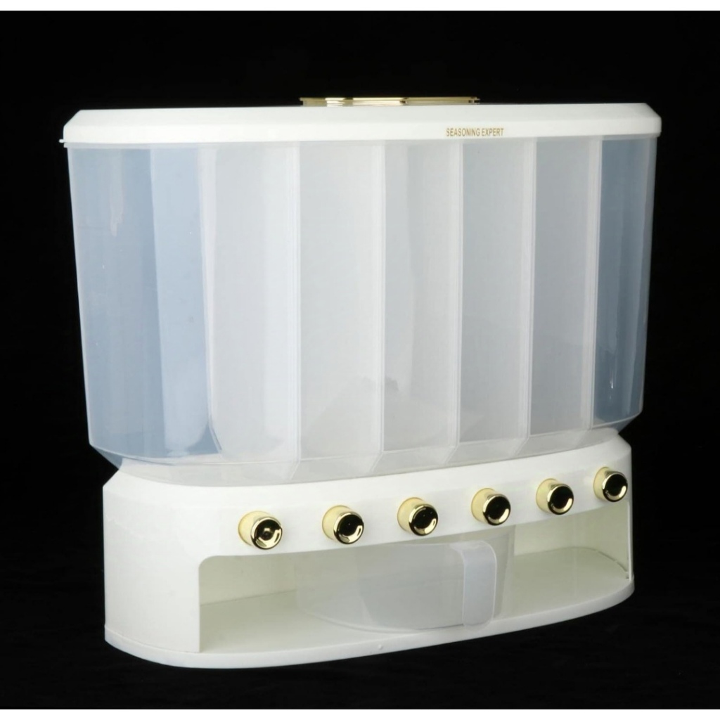 Dispenser Organizador de Grãos com 6 Compartimentos e Botão Dosador – Porta Mantimentos 42x36cm
