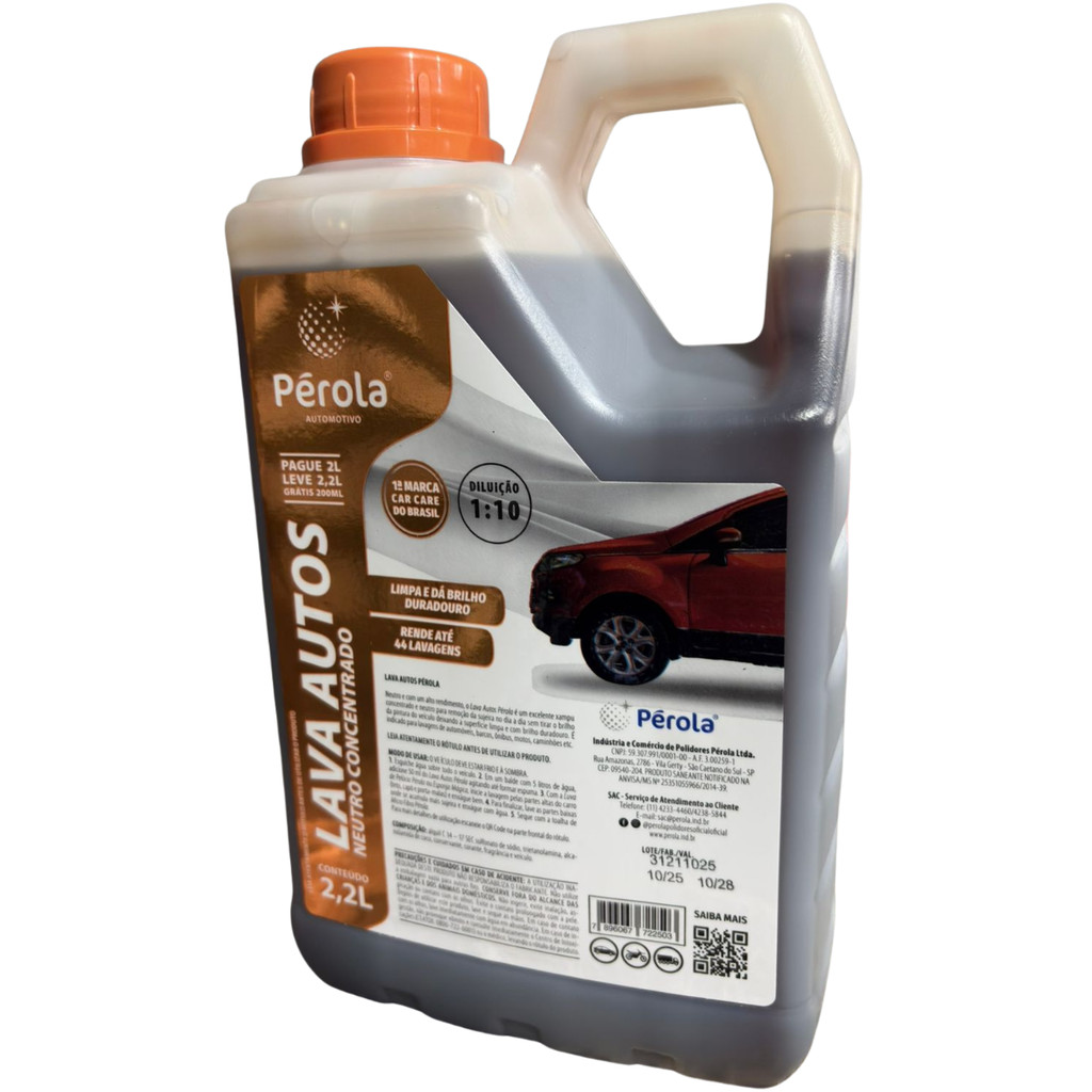 Lava Autos Neutro Pérola 2,2L | Shampoo Concentrado Econômico, Brilho Duradouro, Alta Espuma, Rende Até 44 Lavagens
