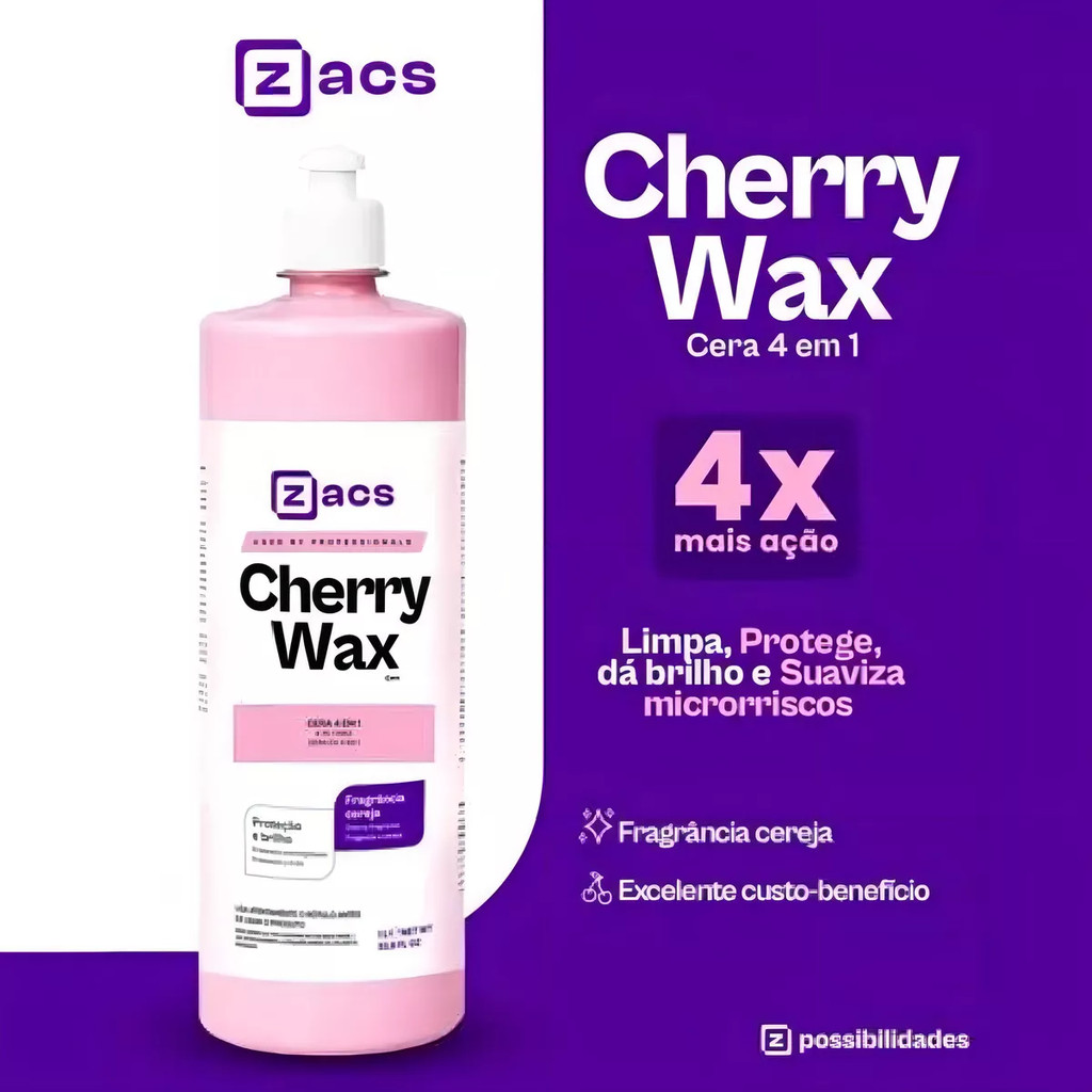 Vonixx Cherry Wax Zacs 500ml Cera Automotiva 4 em 1 Brilho Duradouro Proteção e Contra Sujidades