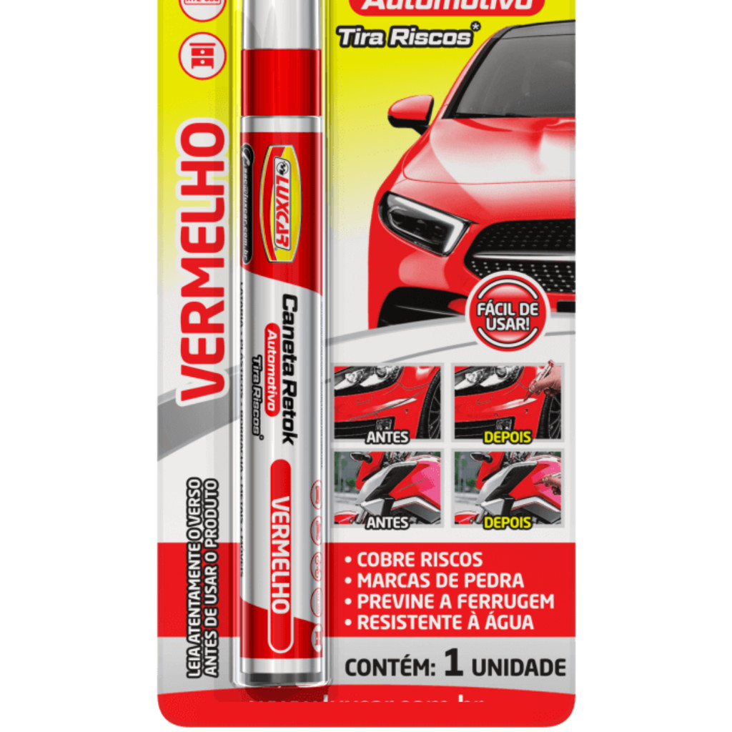 Luxcar Caneta Retok Tira Riscos Vermelho Corrige Arranhões e Disfarça Danos na Pintura Automotiva
