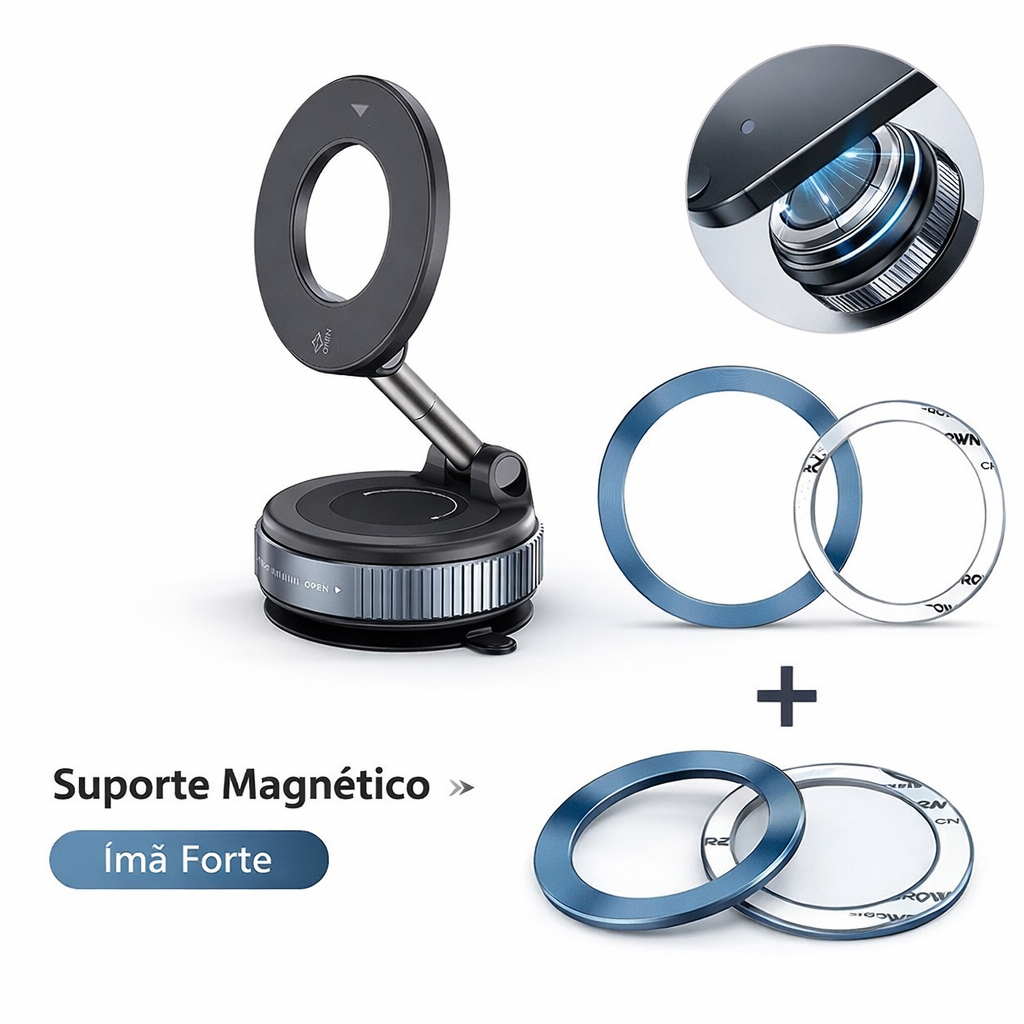 Suporte Magnético Premium 3D para Celular – Dobrável, Super Estável e Design Metálico Moderno 🚗📱