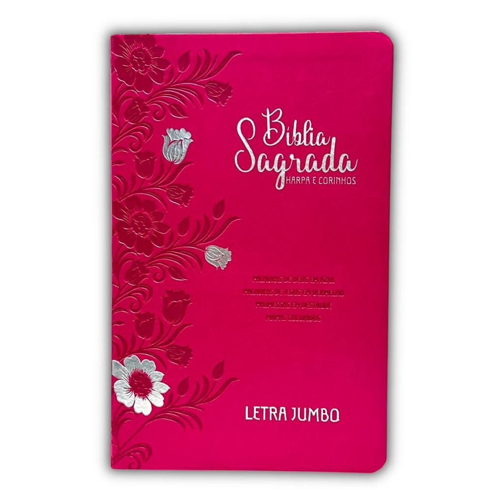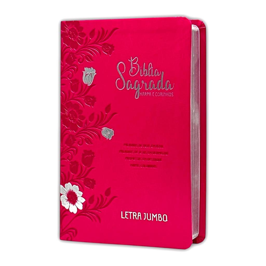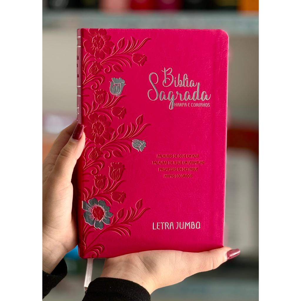 Bíblia Evangélica Linguagem Arc Letra Jumbo Grande Capa Mole Flexível Floral Pink Com Harpa Feminina
