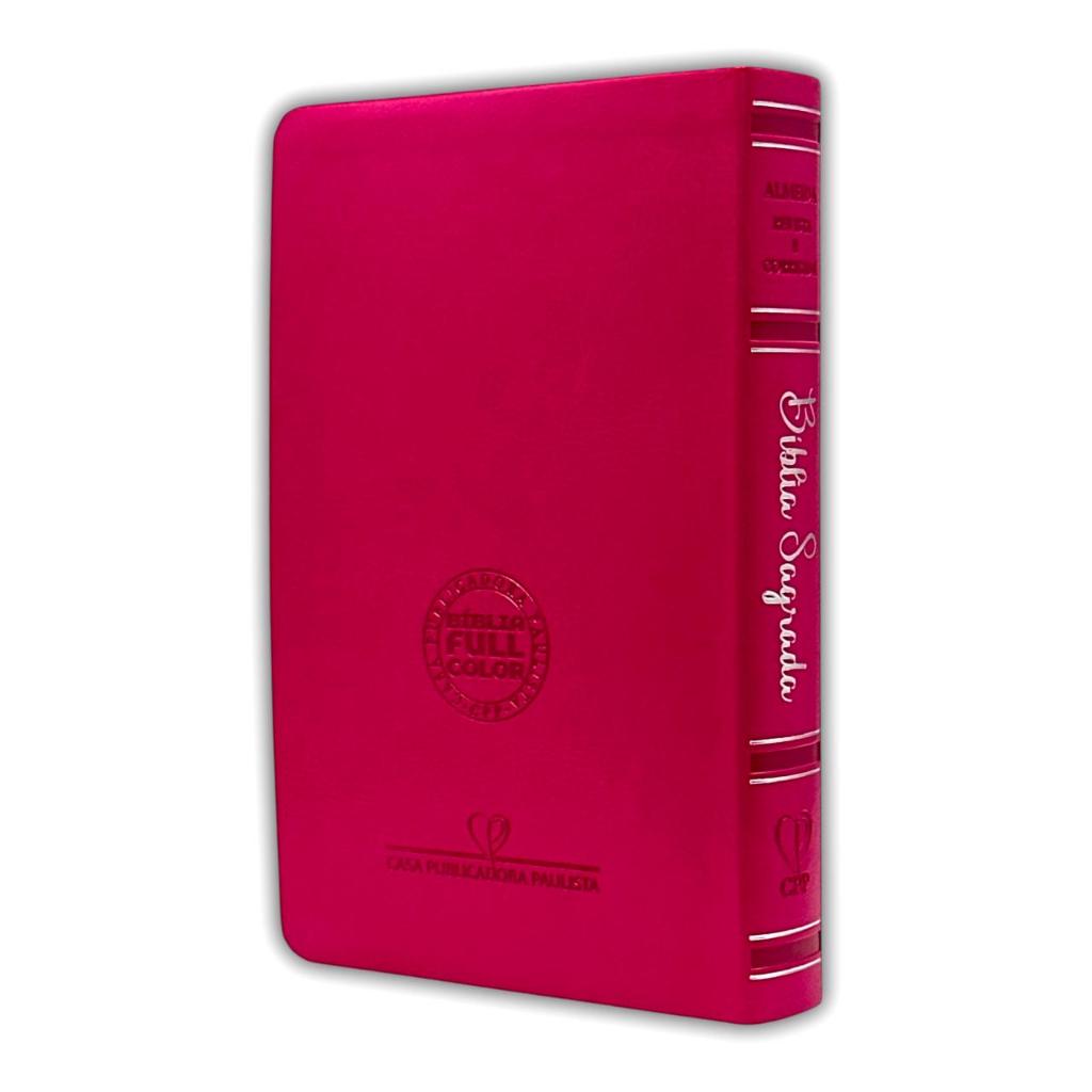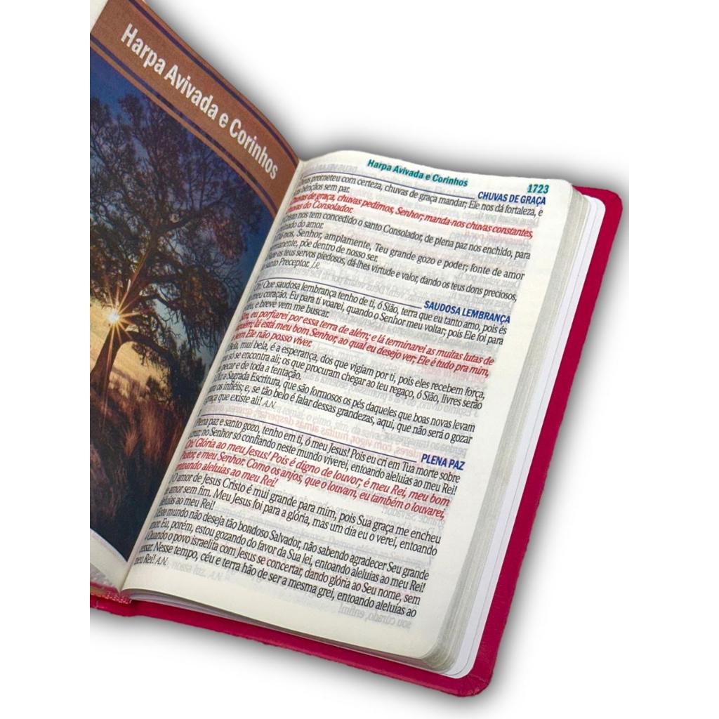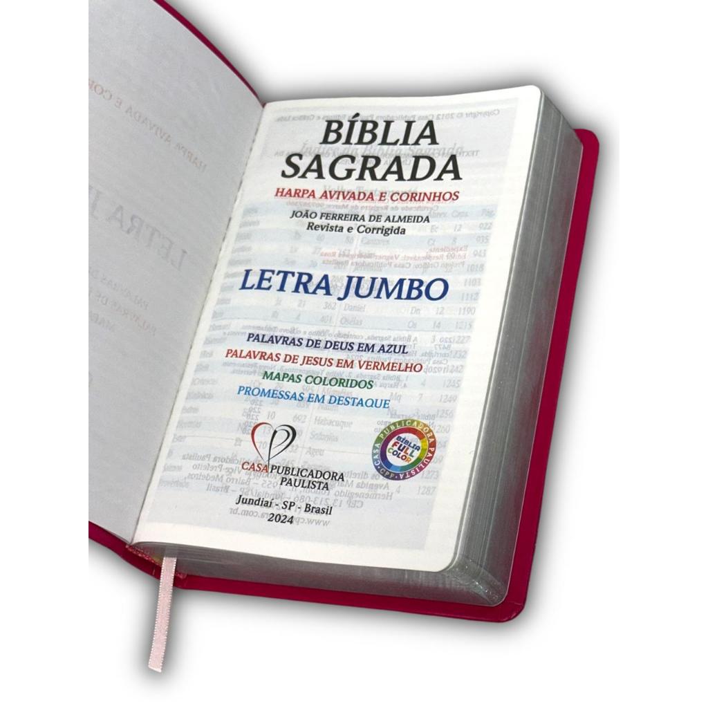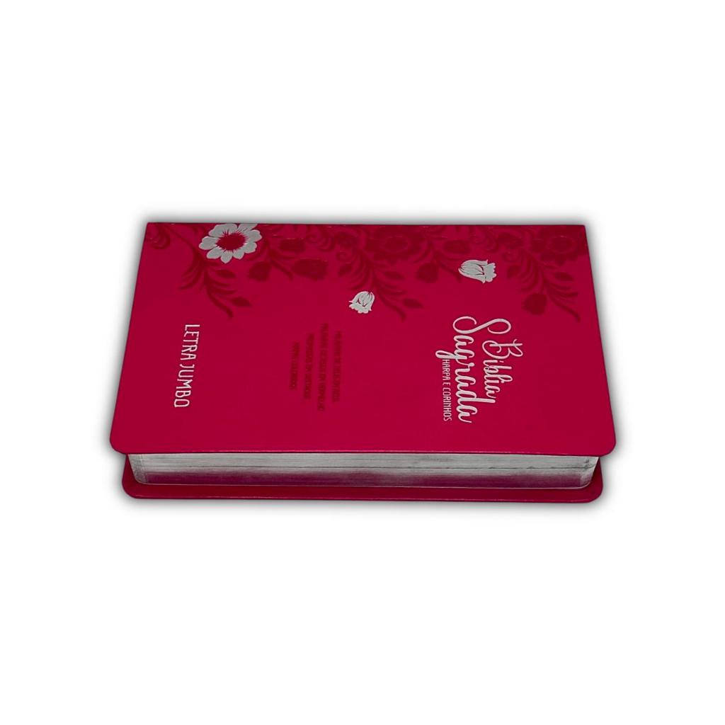 Bíblia Evangélica Linguagem Arc Letra Jumbo Grande Capa Mole Flexível Floral Pink Com Harpa Feminina