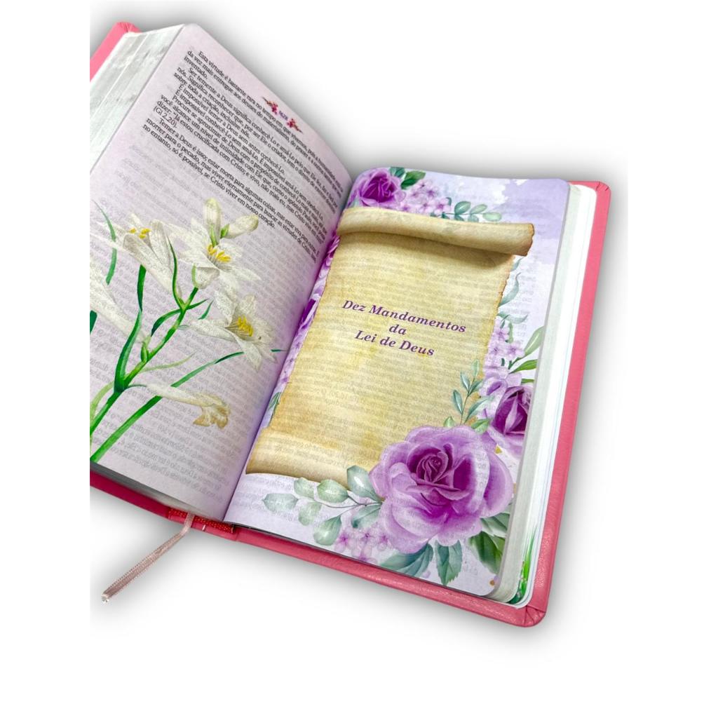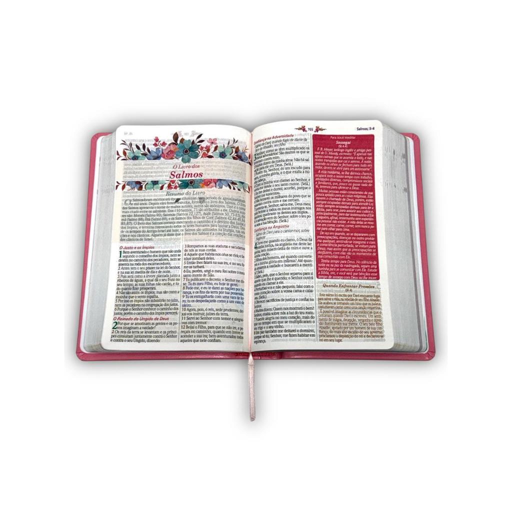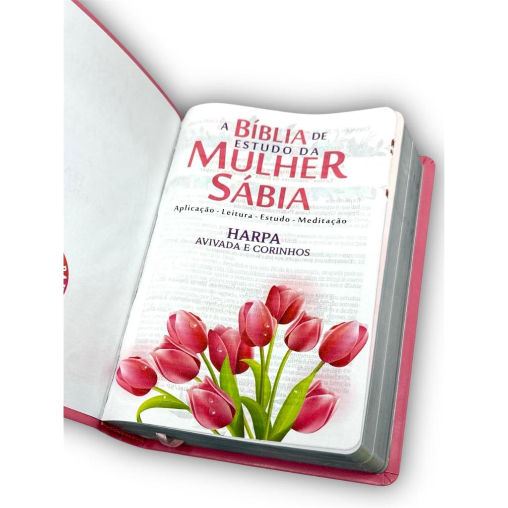 Bíblia Sagrada Mulher Sábia De Estudo Letra Hipergigante Arc Capa Flexível Tulipa Cor Rosa Com Harpa