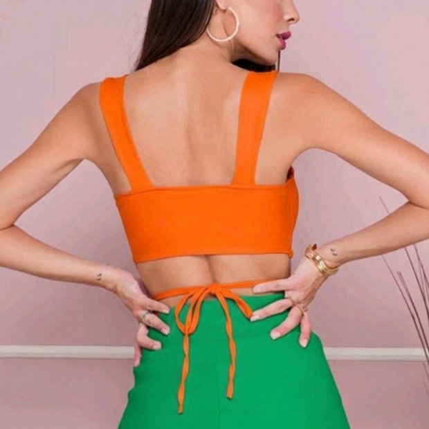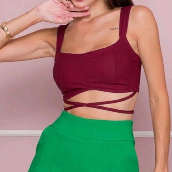 Cropped Alcinha Feminino com Bojo Amarração nas Costas Tecido Suplex Confortável