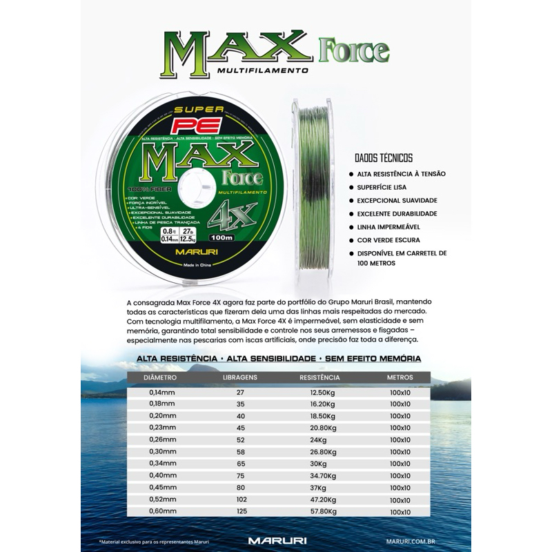 Linha de Pesca Multifilamento 4X Max – 4 Fios – Verde 100m – Alta Resistência (Várias Medidas)