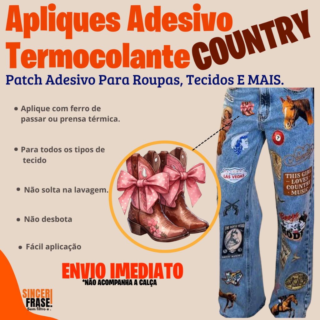 Adesivo Estampas Country Pronto Para Aplicar Jeans e mais Aplique Termocolante Personalizar Tipo Calça Ana Castelo