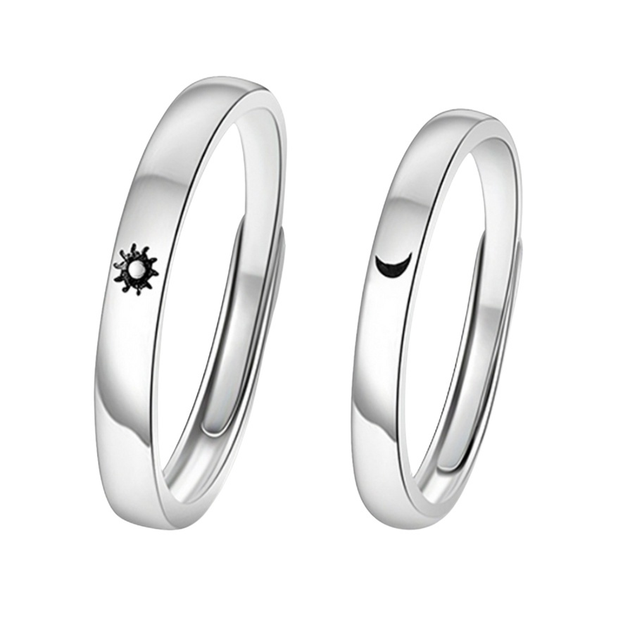 Par Aliança Sol e Lua Ajustável Casal Banhada Prata 925 presente Namoro Compromisso Anel Amor Eterno