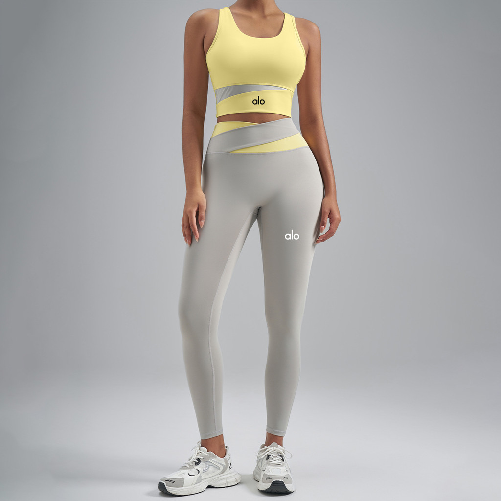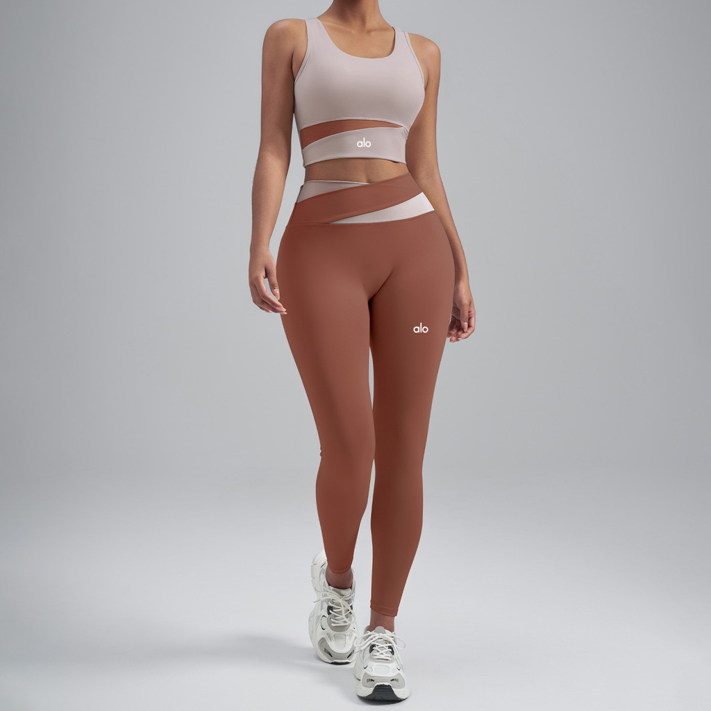 Cor correspondente Yoga terno pêssego apertado à prova de choque alta elasticidade esportes Fitness Wear terno de duas p