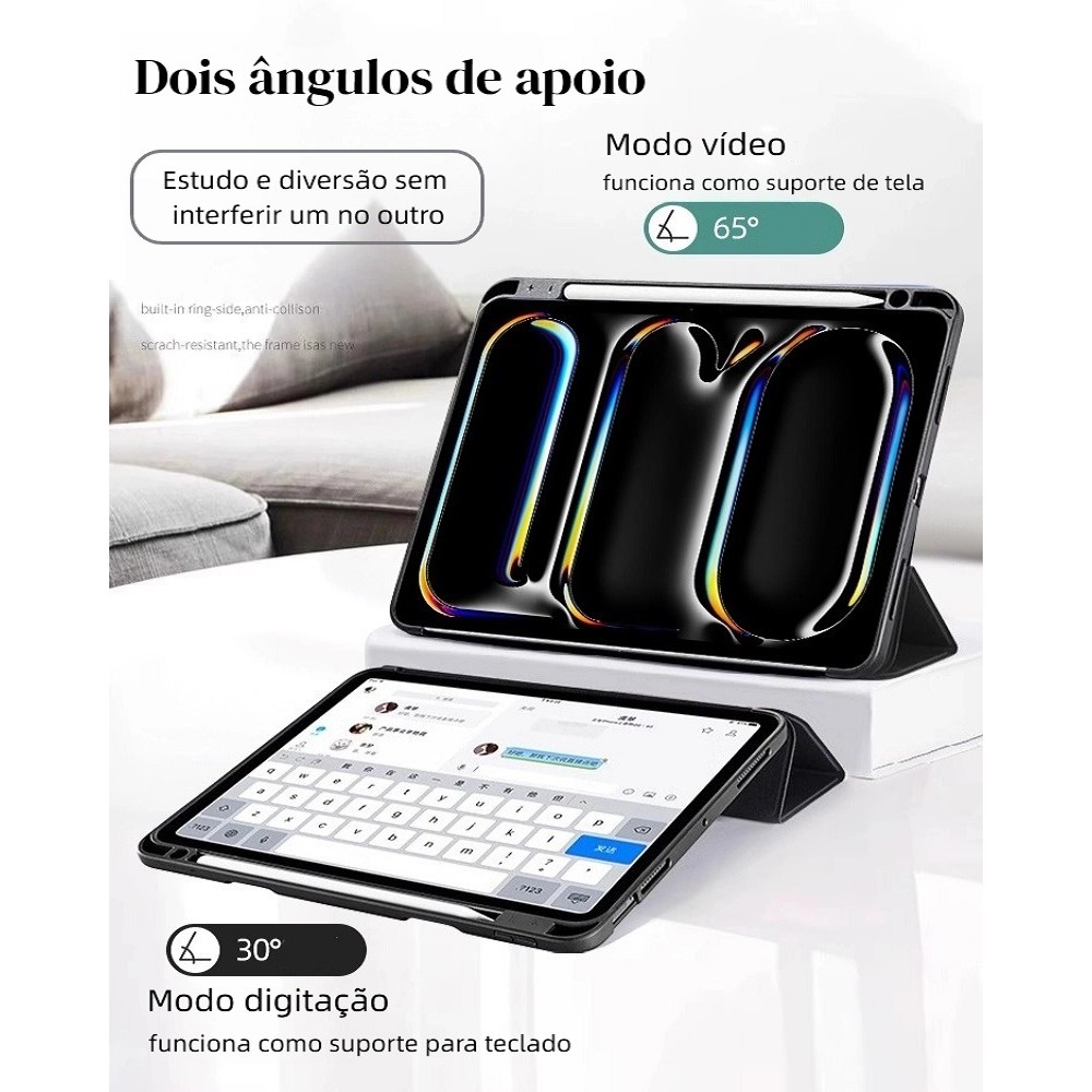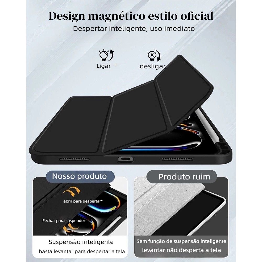 Capa Silicone Tri-Fold para Samsung Galaxy Tab S9FE/S10FE com Porta Caneta e Função Auto Sleep