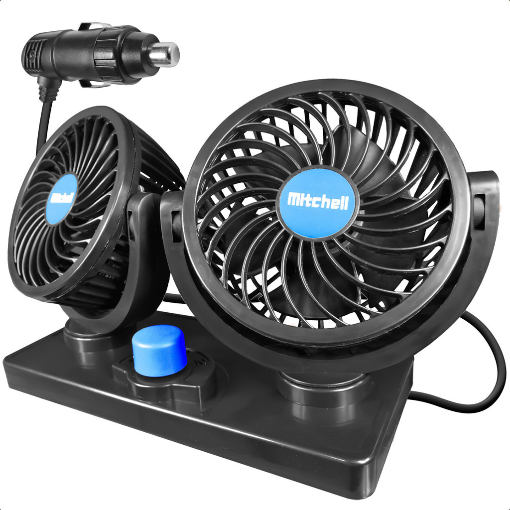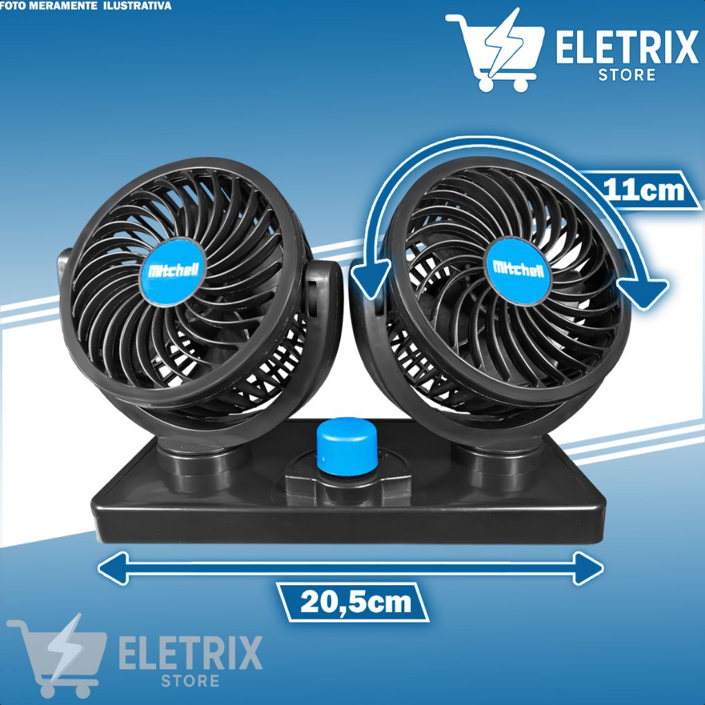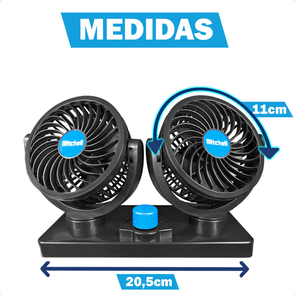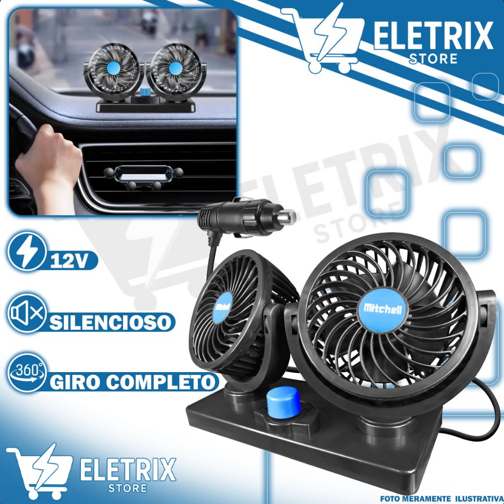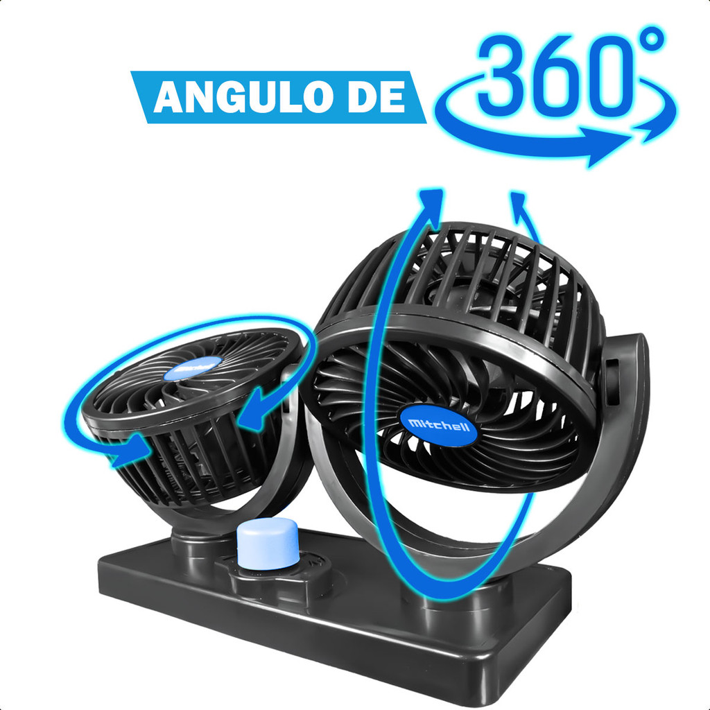 Mini Ventilador Duas Cabeças Duplo Carro Automotivo 12V Giratório 360° Veículo 2 Níveis P/Automóvel