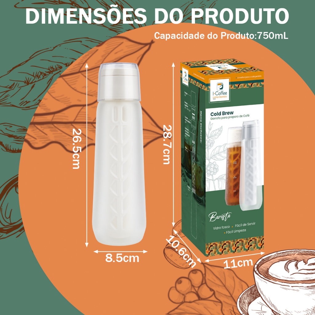 iCoffee Cafeteira Cold Brew Infusor vidro Café Chá Gelado 750ml
