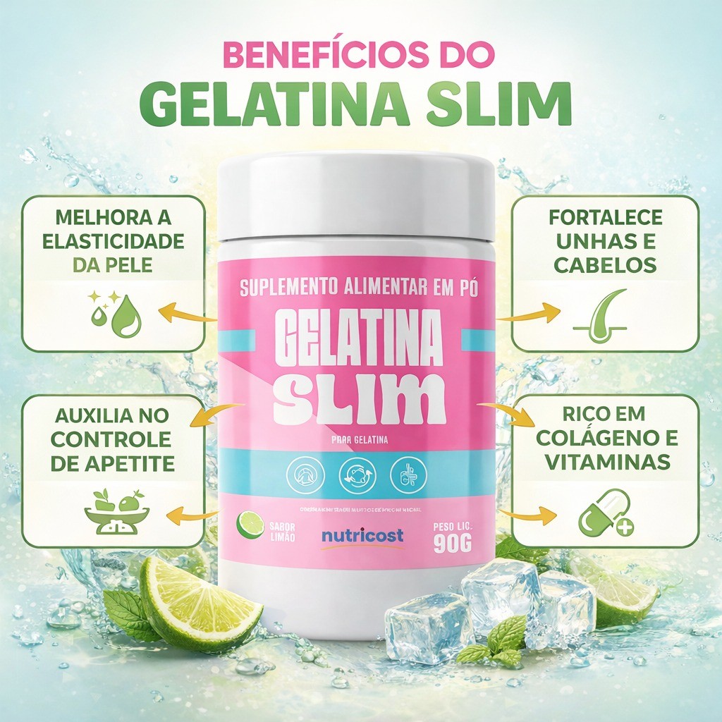 Gelatina Slim sabor Limão 90 g Suplemento Alimentar Original.