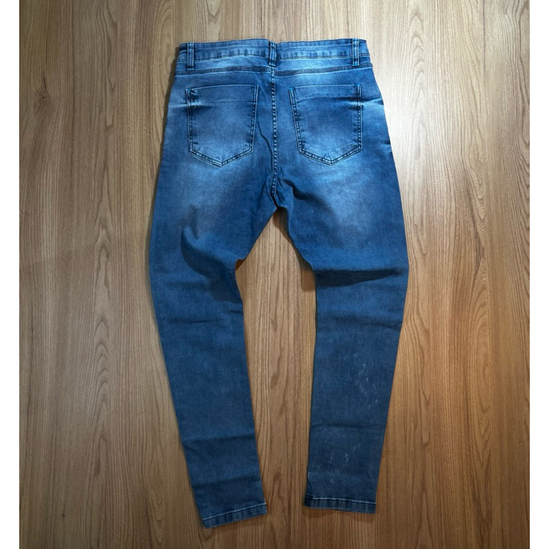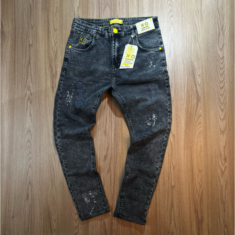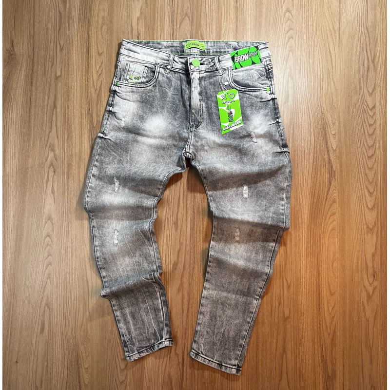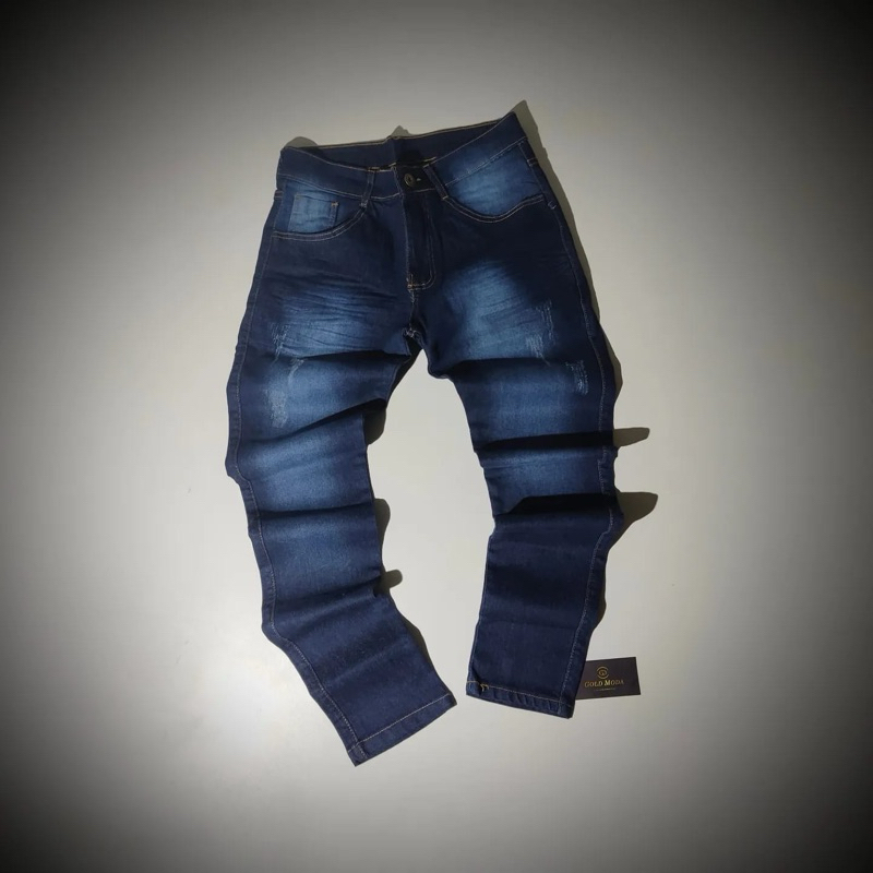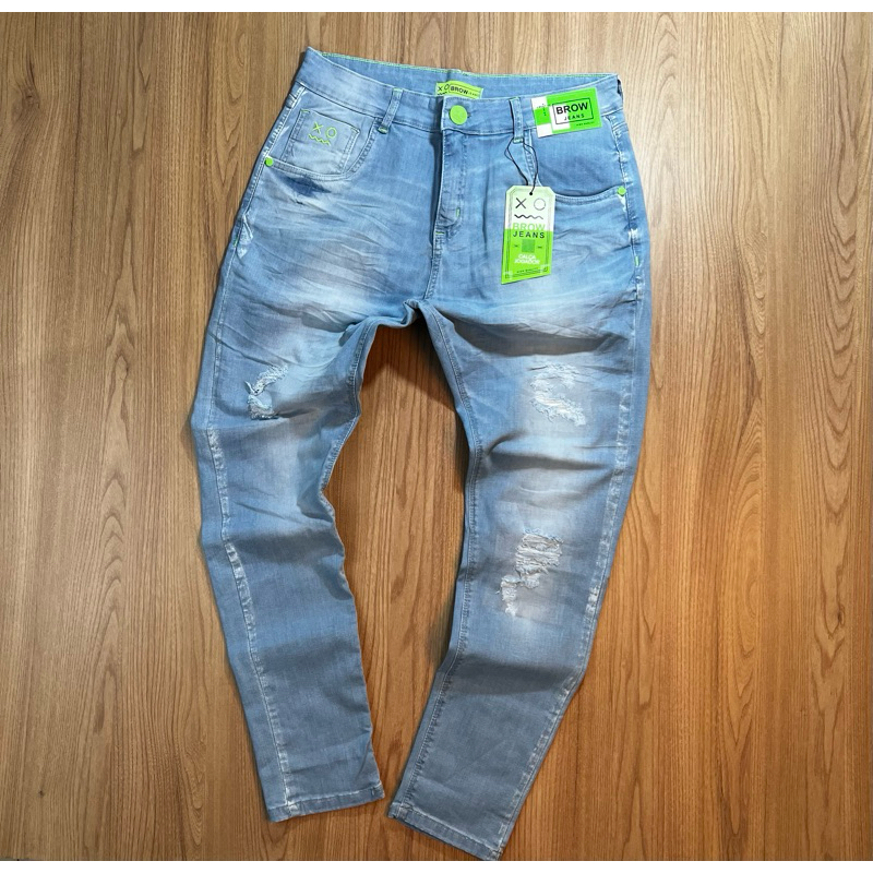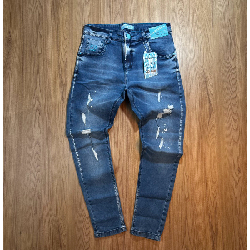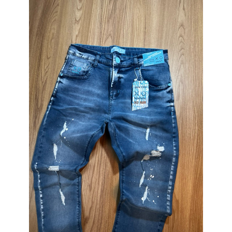 CALÇA JOGADOR JEANS AZUL COM DETALHES BRANCOS(BROW JEANS)
