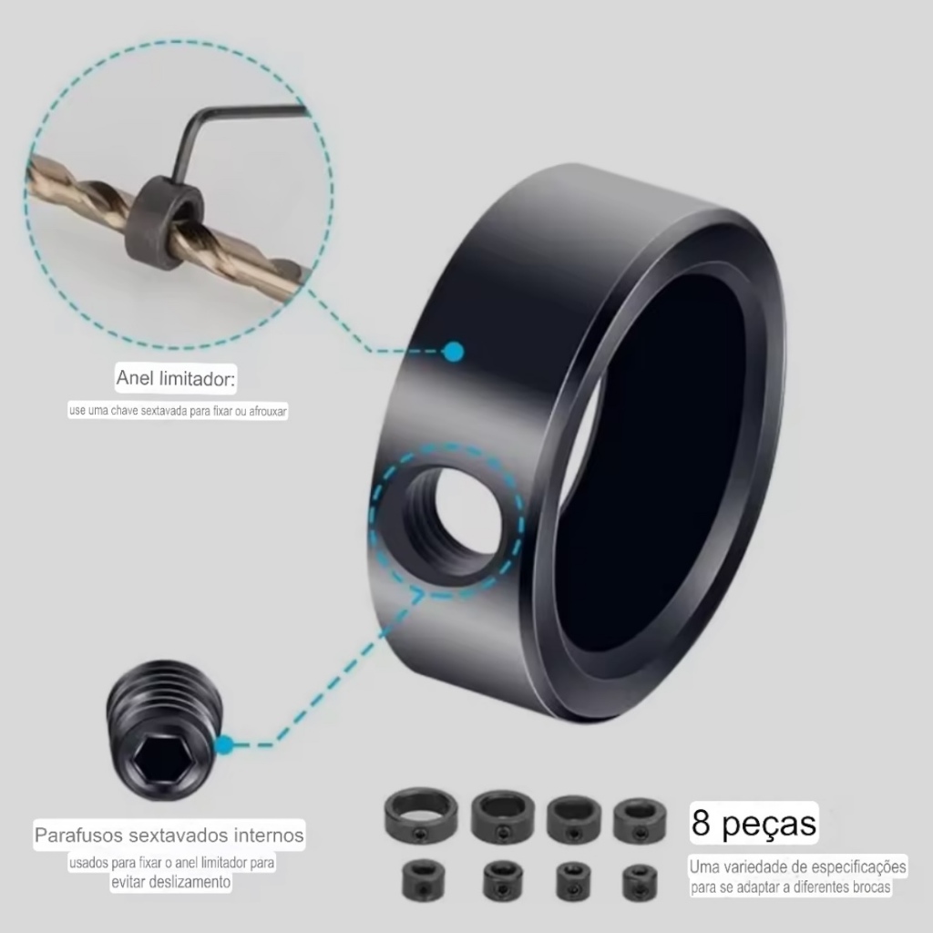 Kit 8 Anéis 3 A 16mm Limitadores De Profundidade Para Brocas