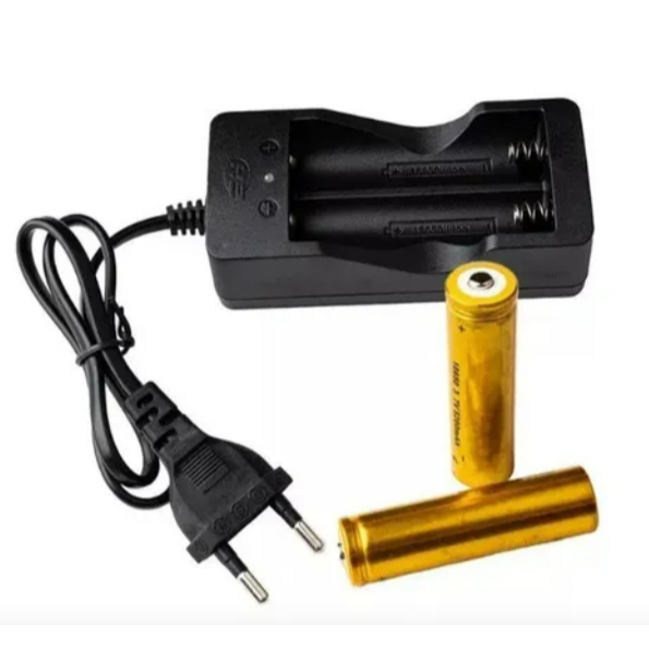 Carregador Duplo com molas + Duas Bateria 18650 Recarregável
