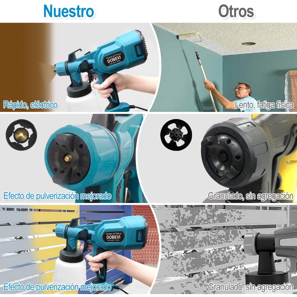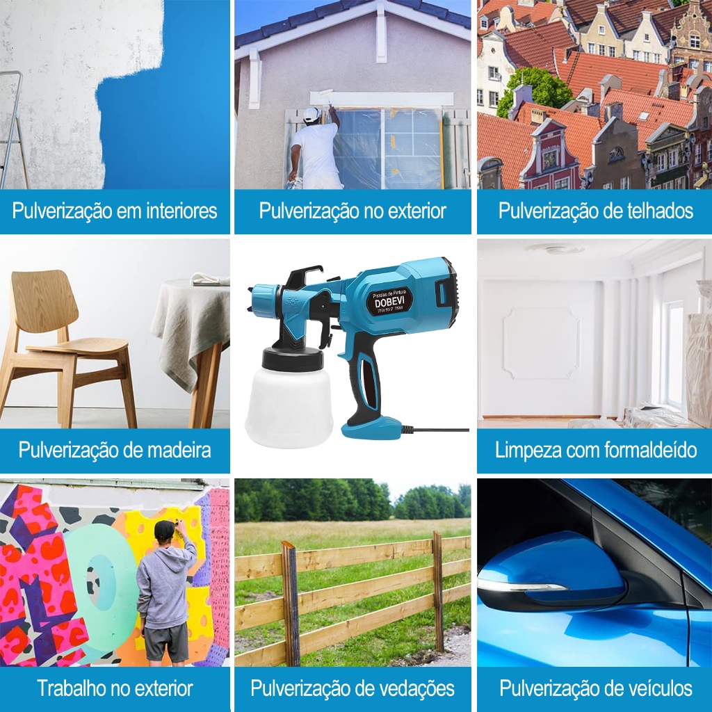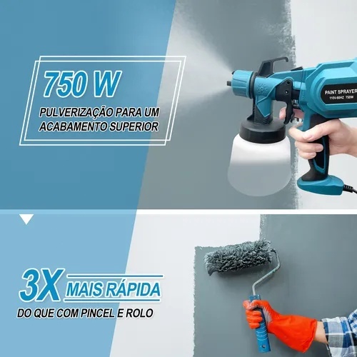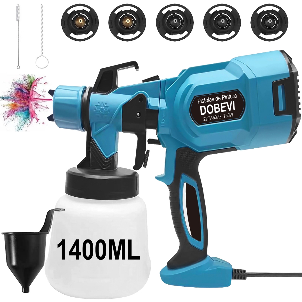 1400ML Pistola Pintura Elétrica Pulverizador 750w C/5 Bicos Grande Capacidade Pulverizador de Tinta