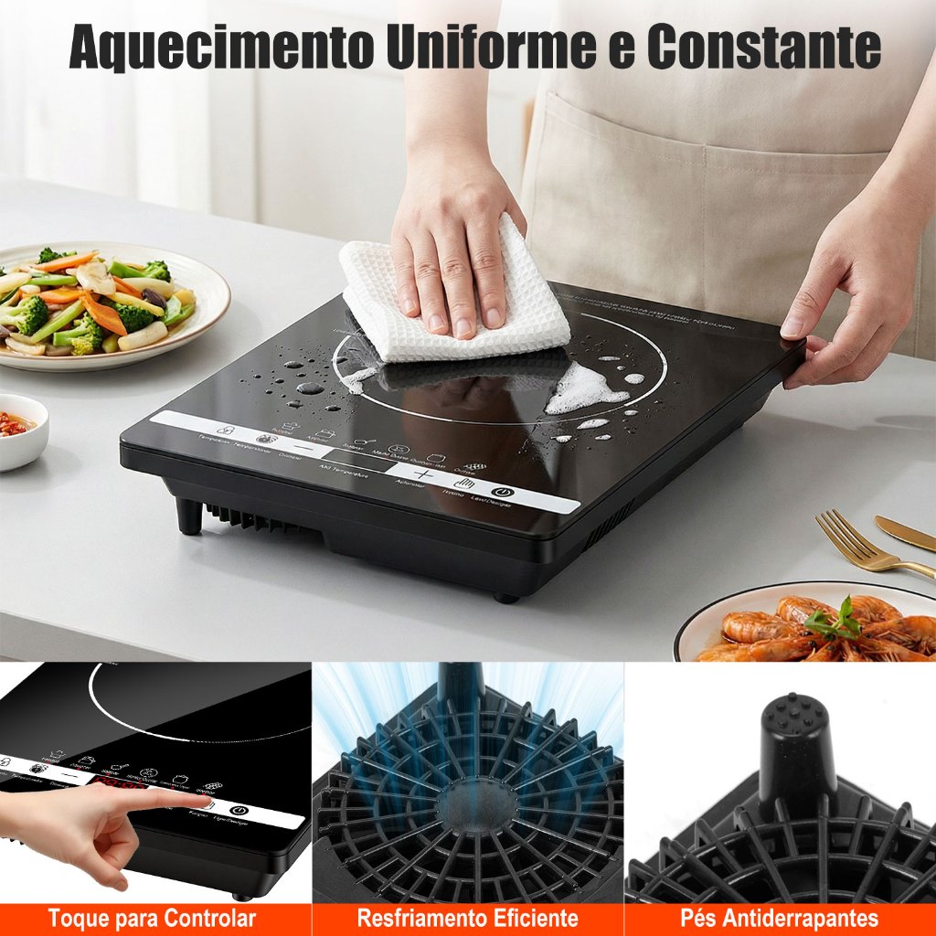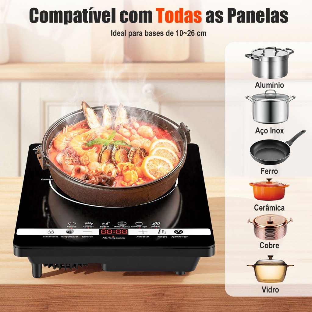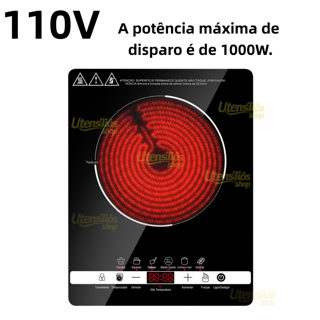 Cooktop Indução 1 Boca Portátil Trava Segurança 110/220V