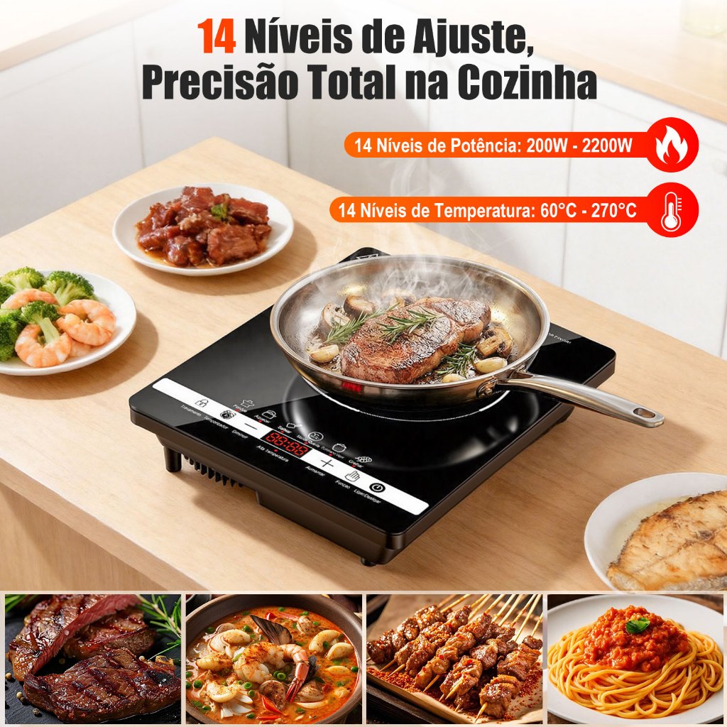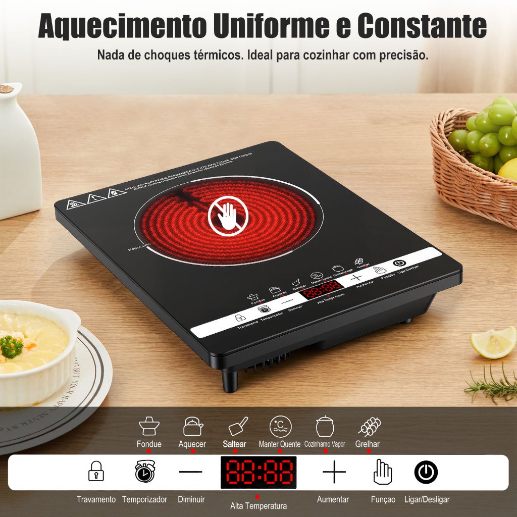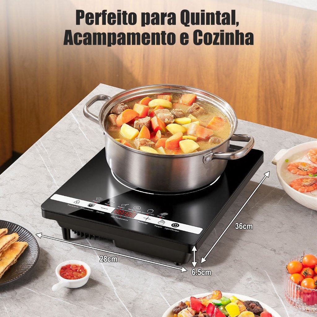 Cooktop Indução 1 Boca Portátil Trava Segurança 110/220V