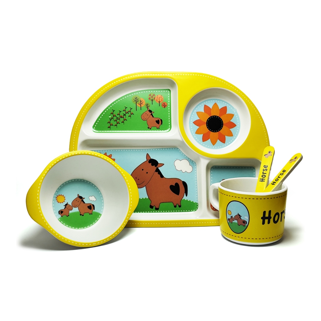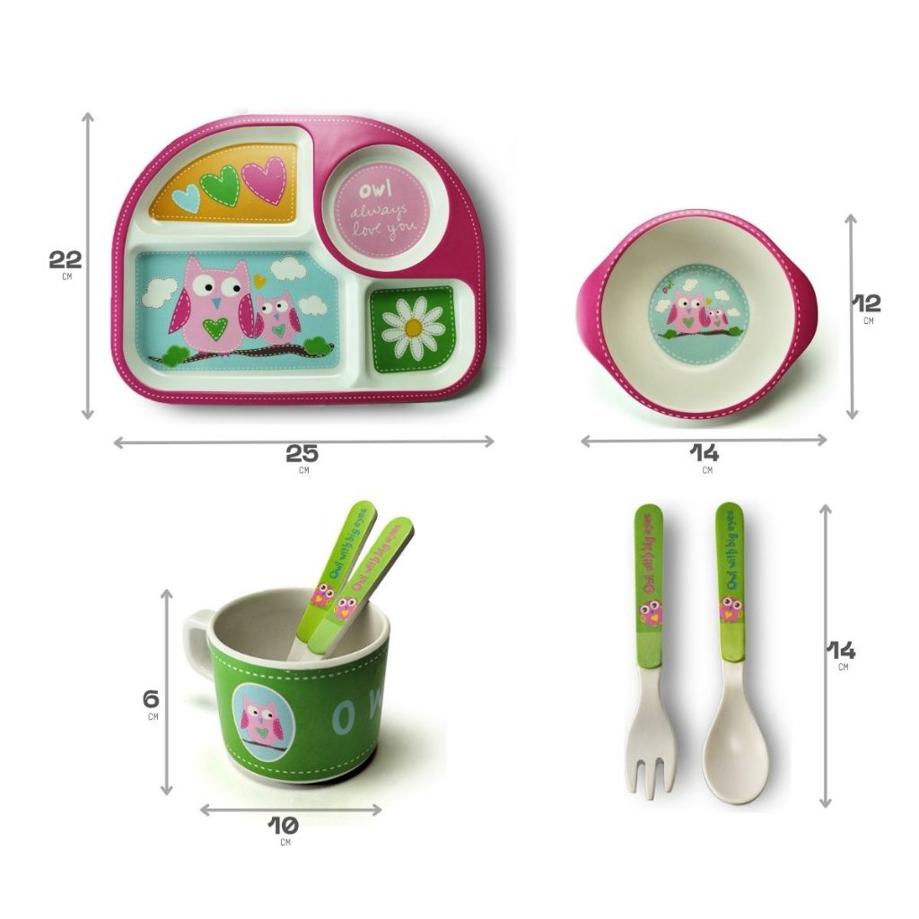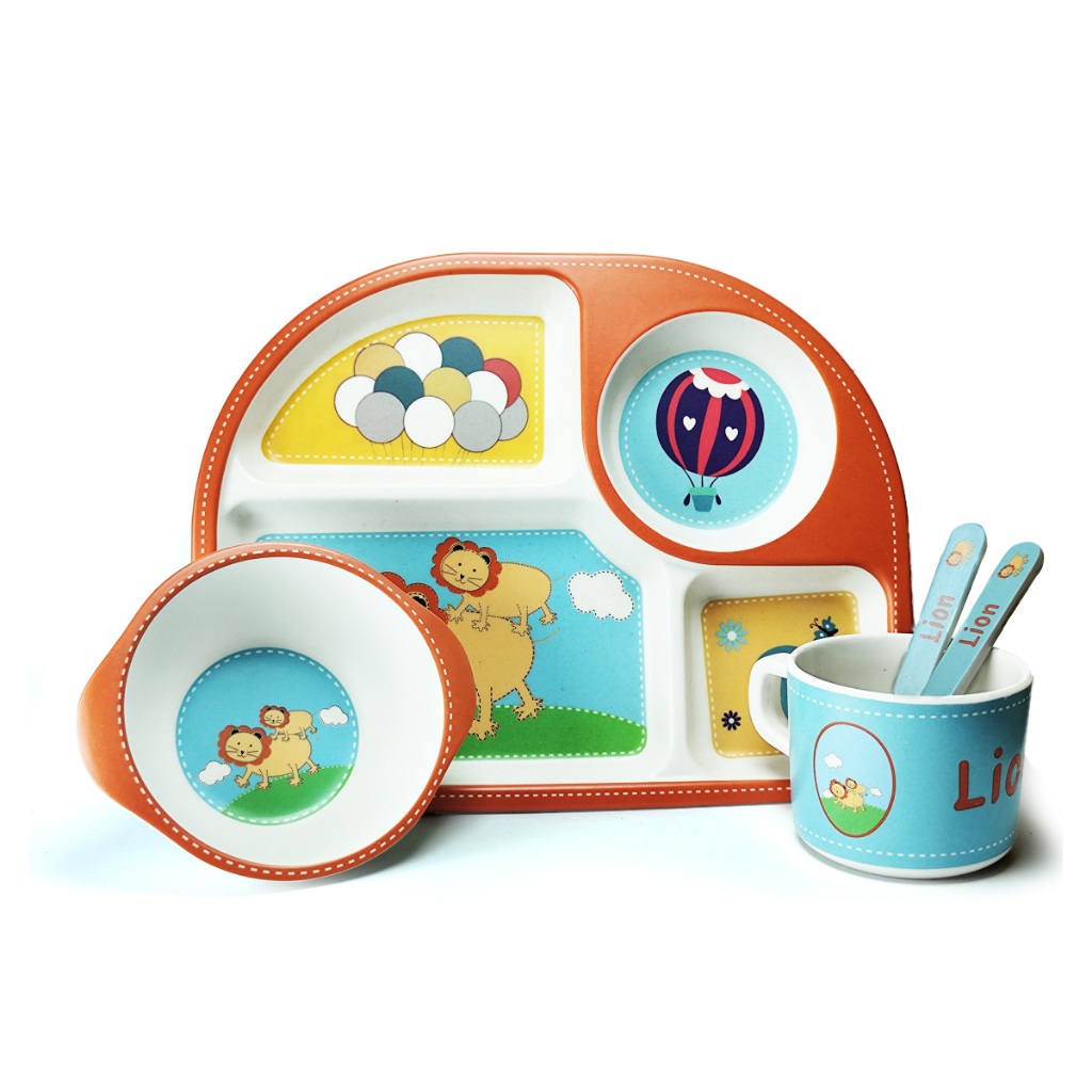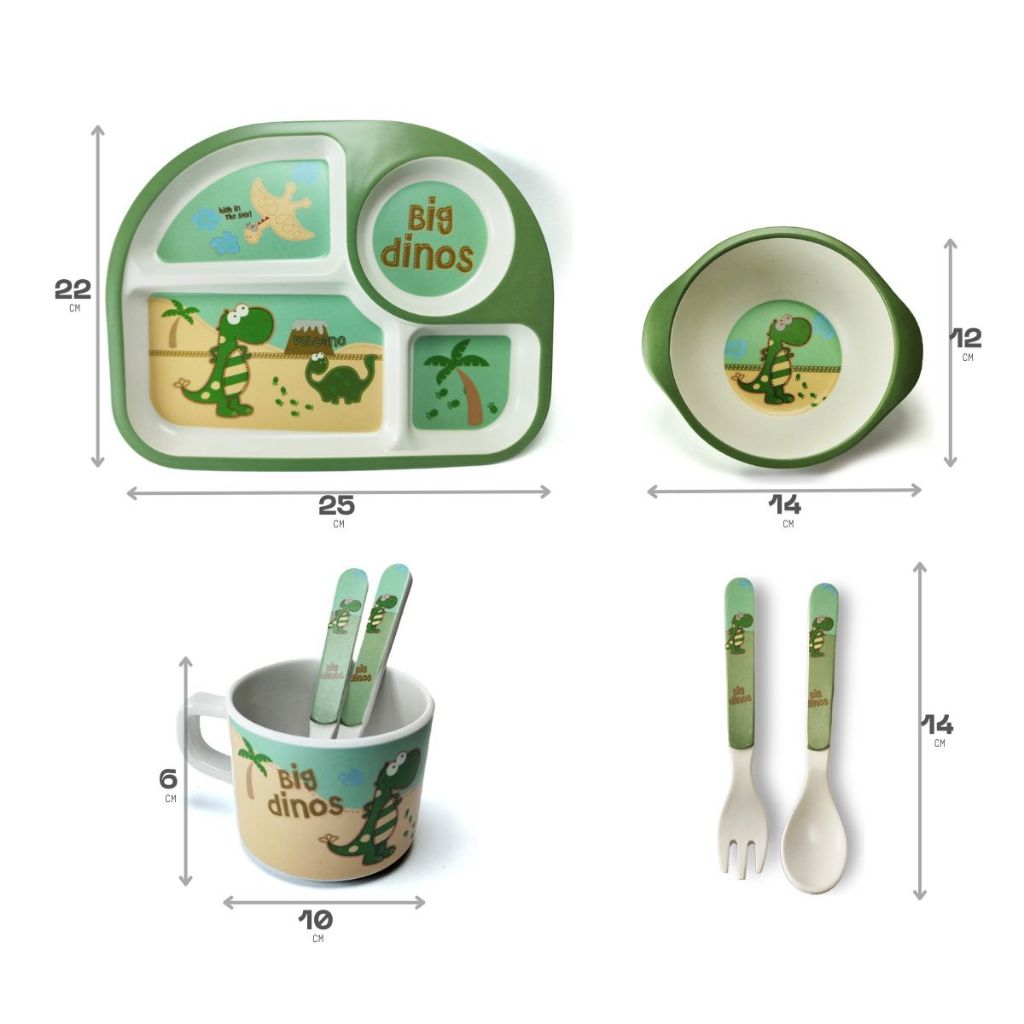 Conjunto Refeição Bebê Kit 5 Peças Em Fibra De Bambu Natural