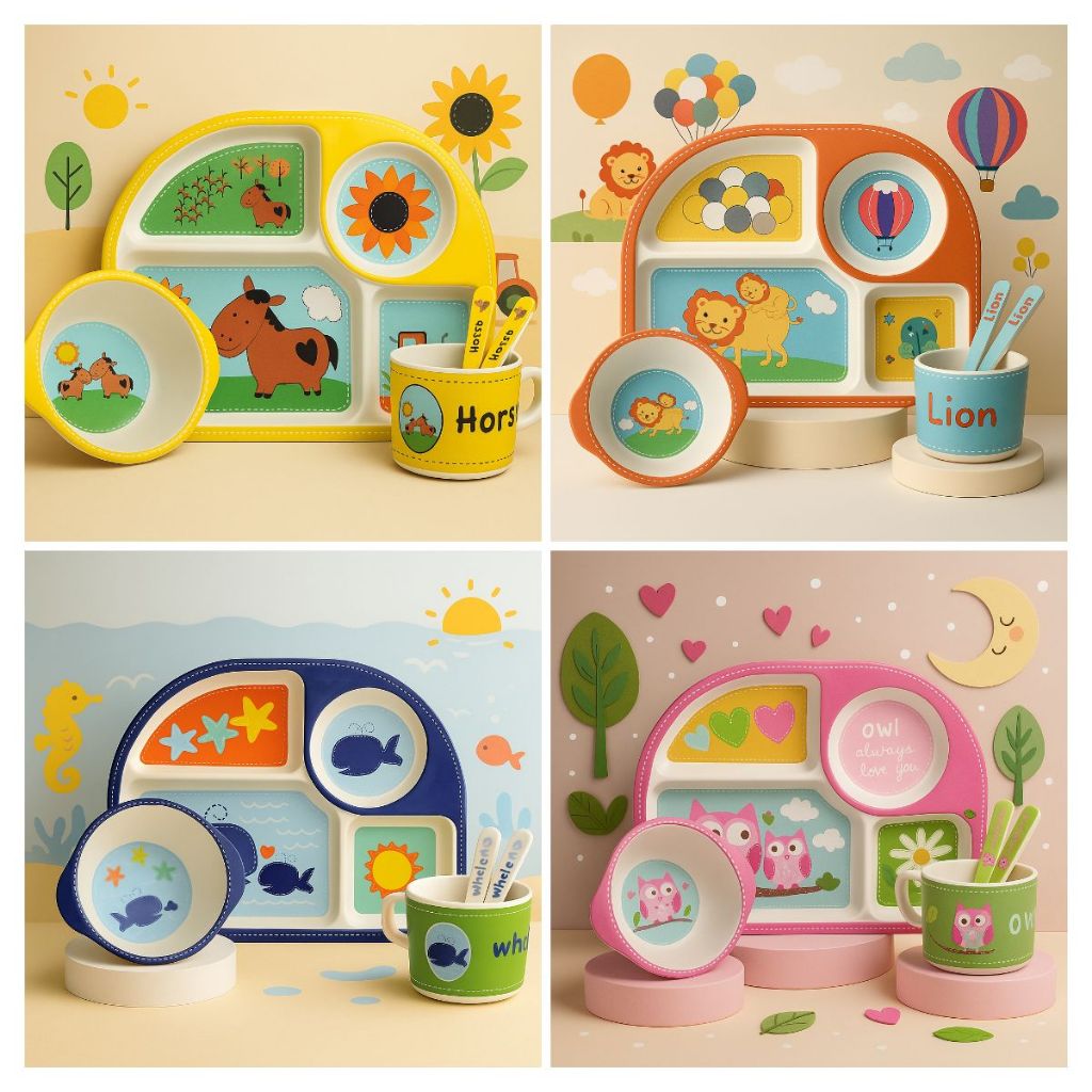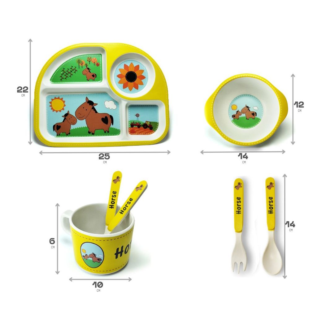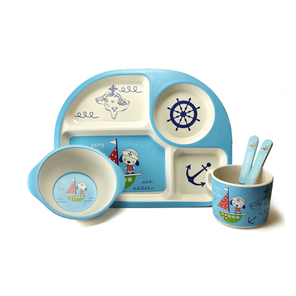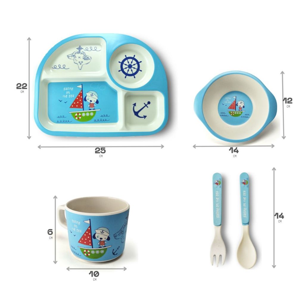 Conjunto Refeição Bebê Kit 5 Peças Em Fibra De Bambu Natural