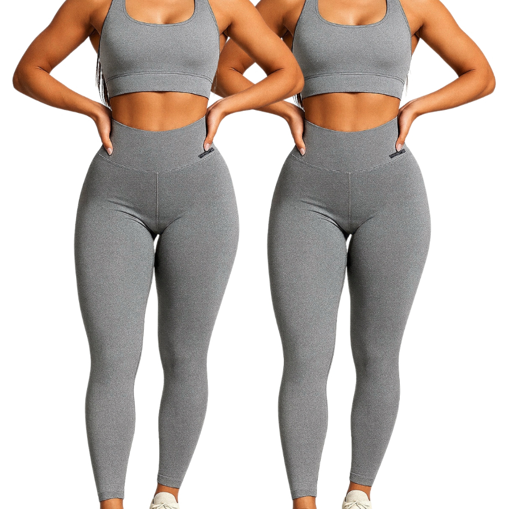 Kit 2 Calças Legging Feminina Cintura Alta Zero Transparência Academia Fitness Básica Confortável