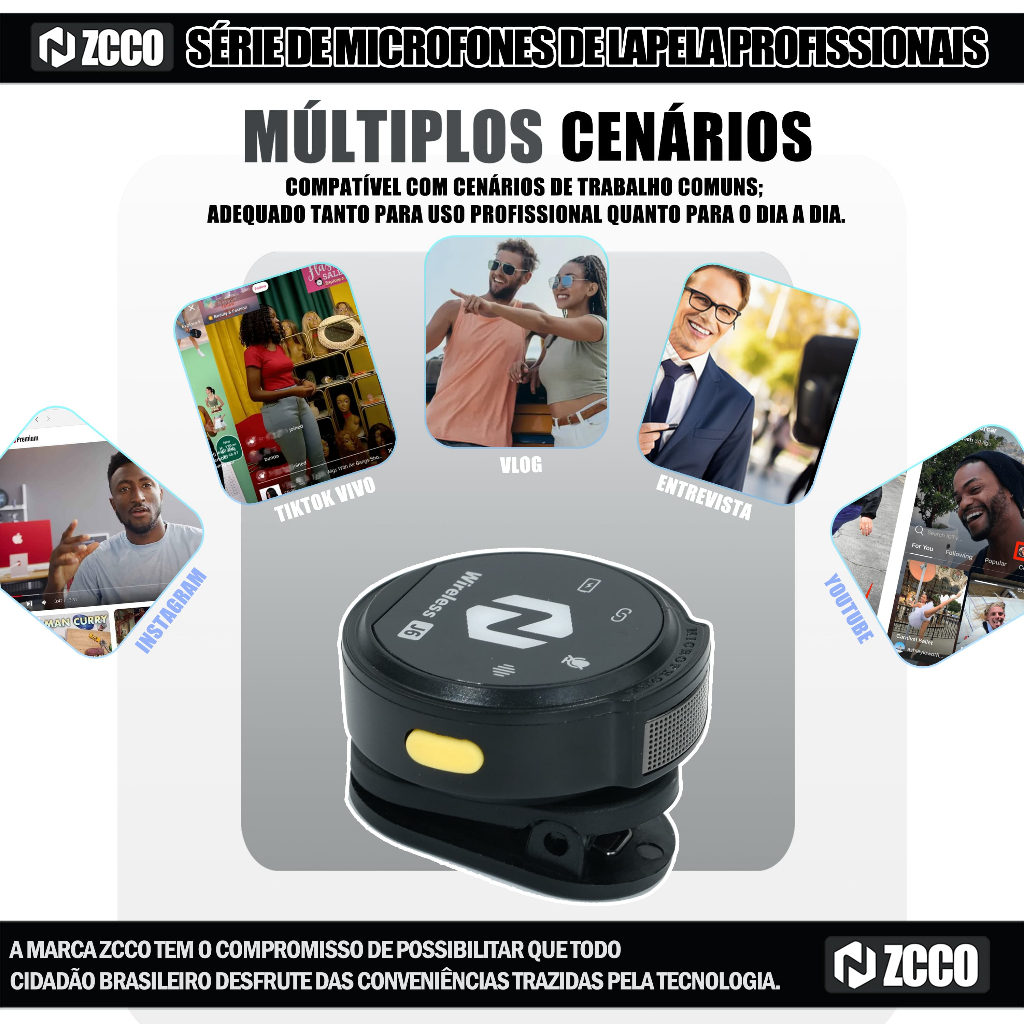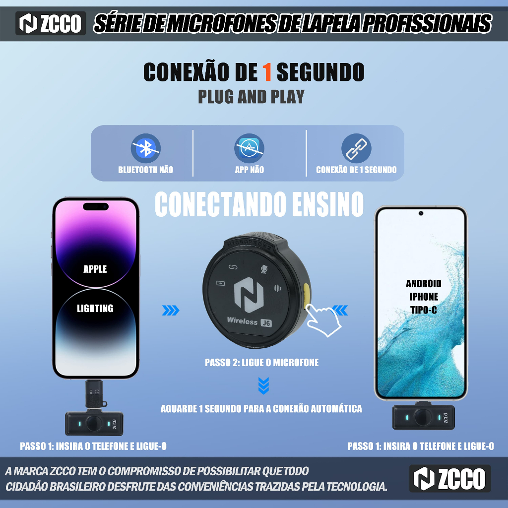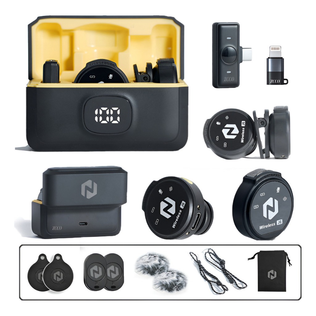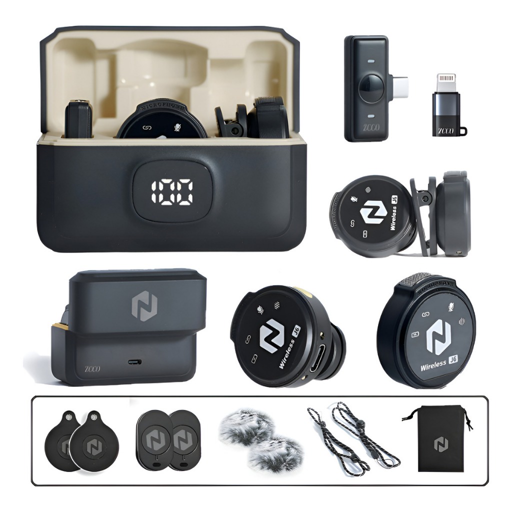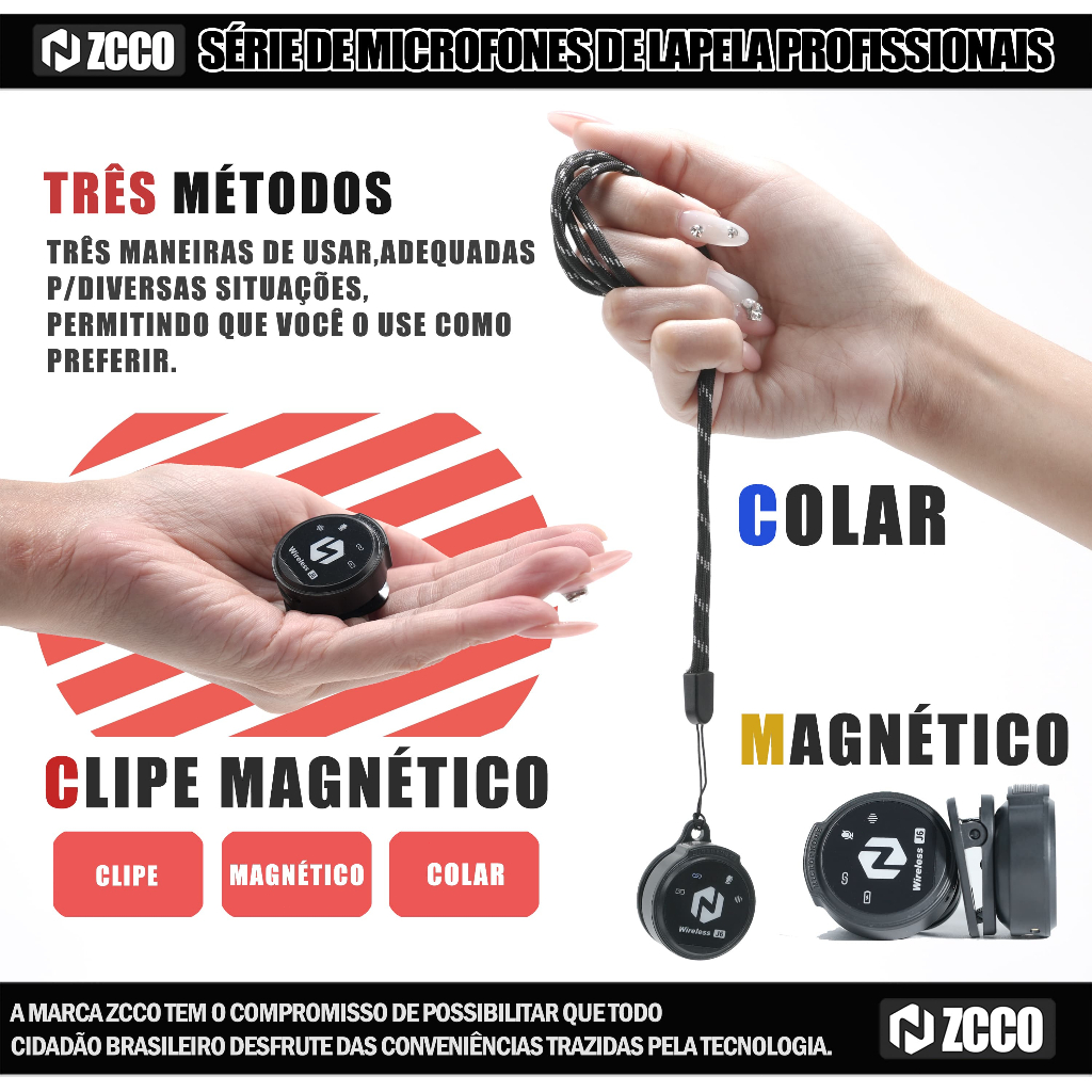 ZCCO J6 Microfone de Lapela Sem Fio Magnético Redução de Ruído Bateria Longa Compatível com iPhone / Android / iPad Para