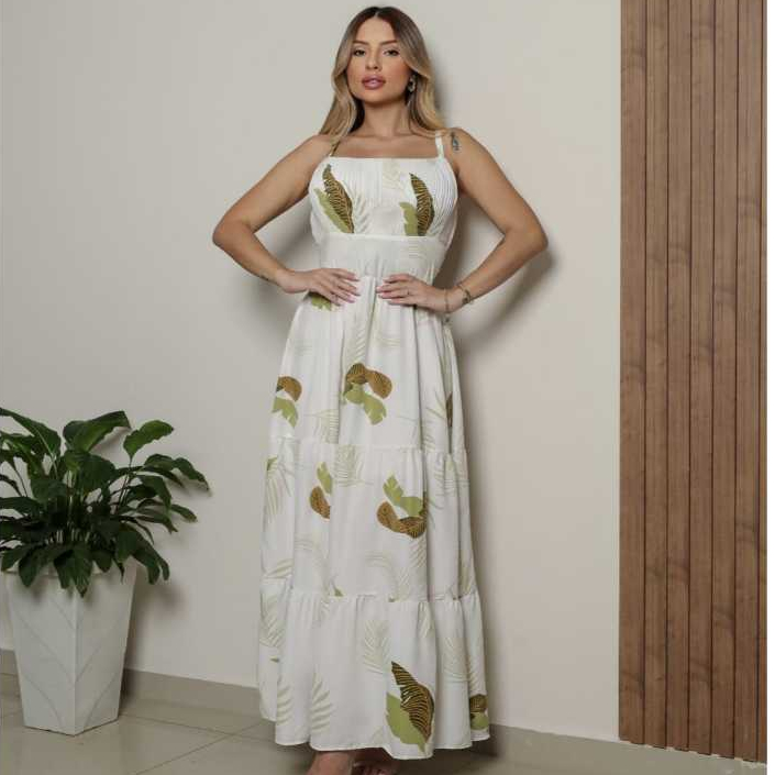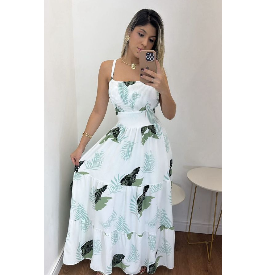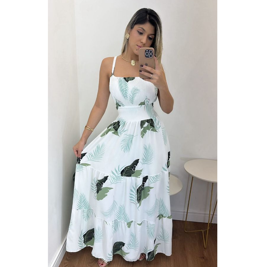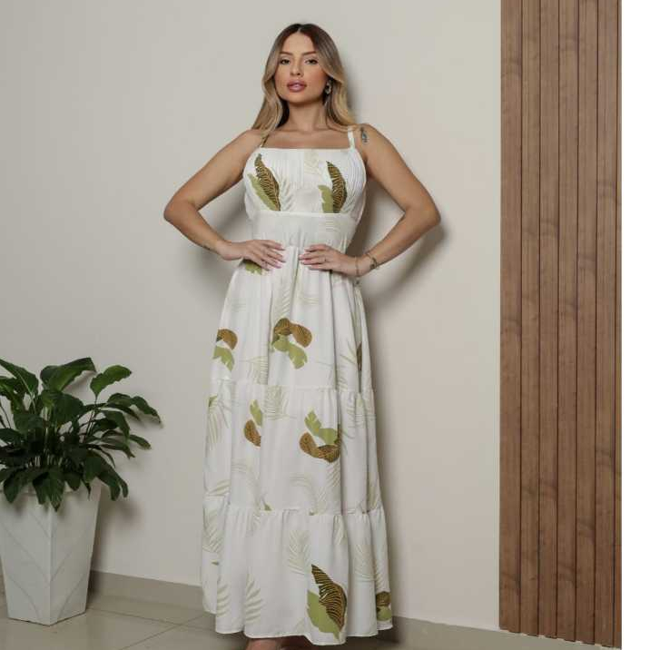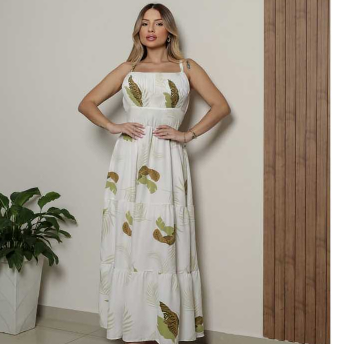 VESTIDO LONGO FEMENINO FRENTE PLISADO TAMANHOS M G