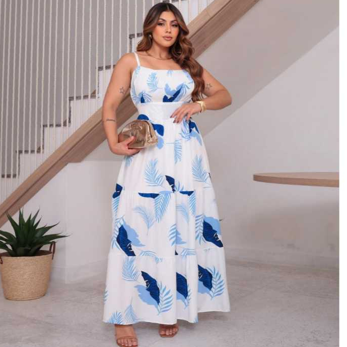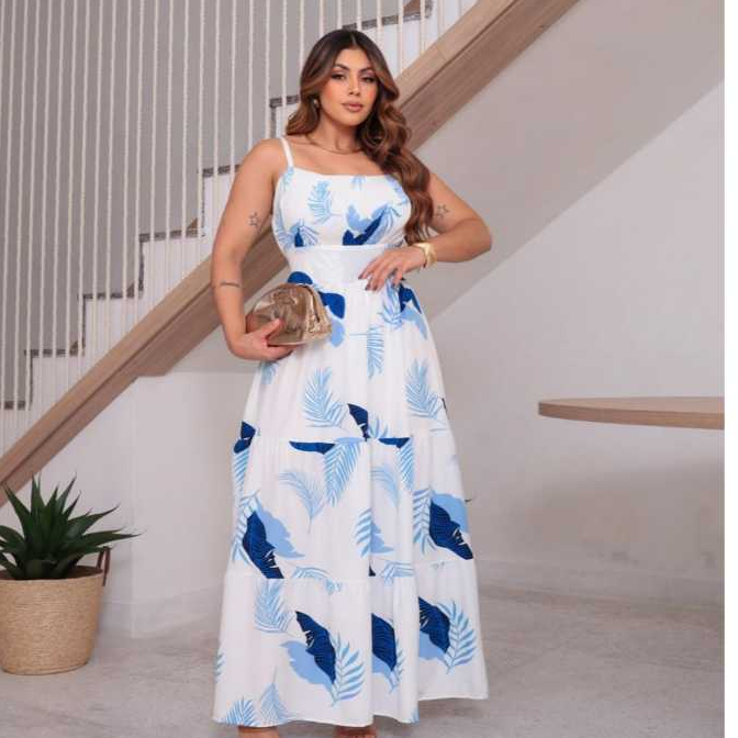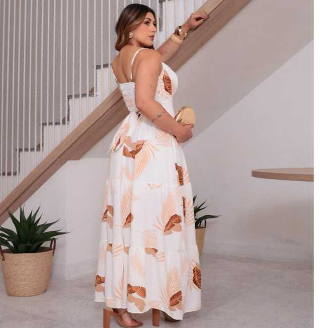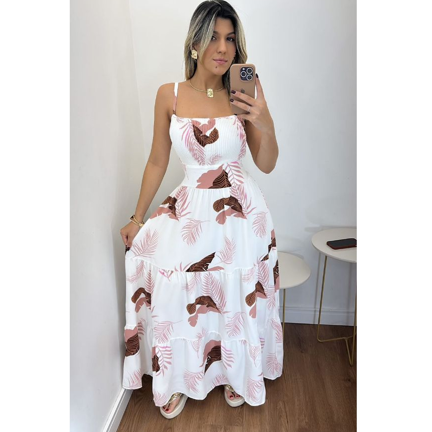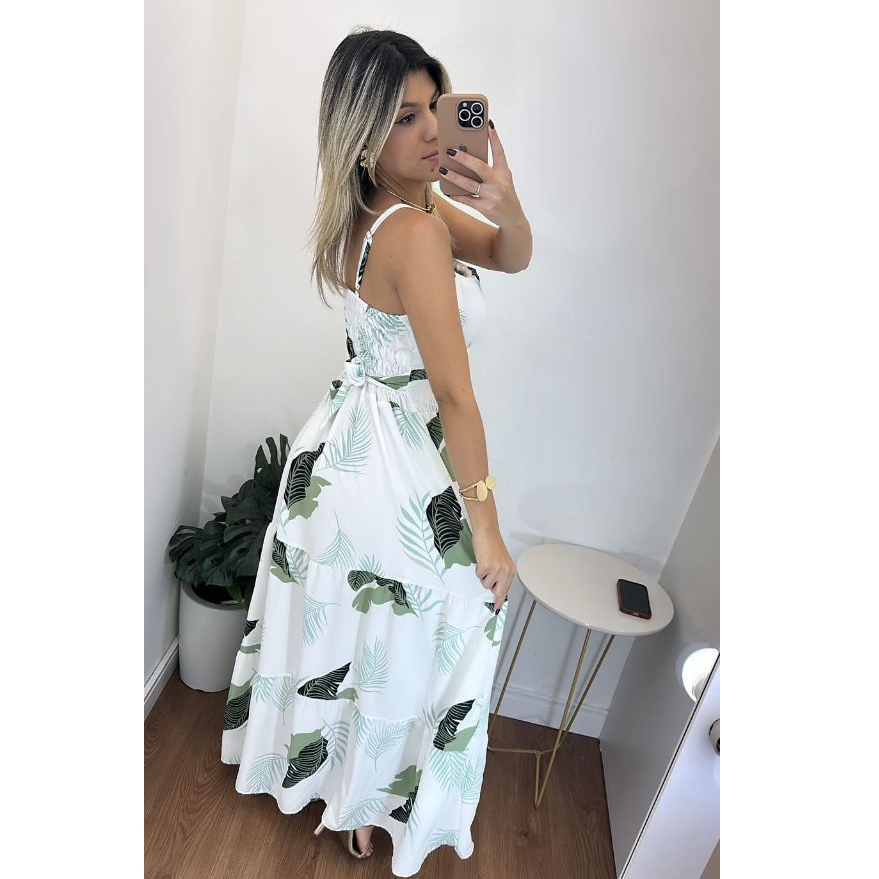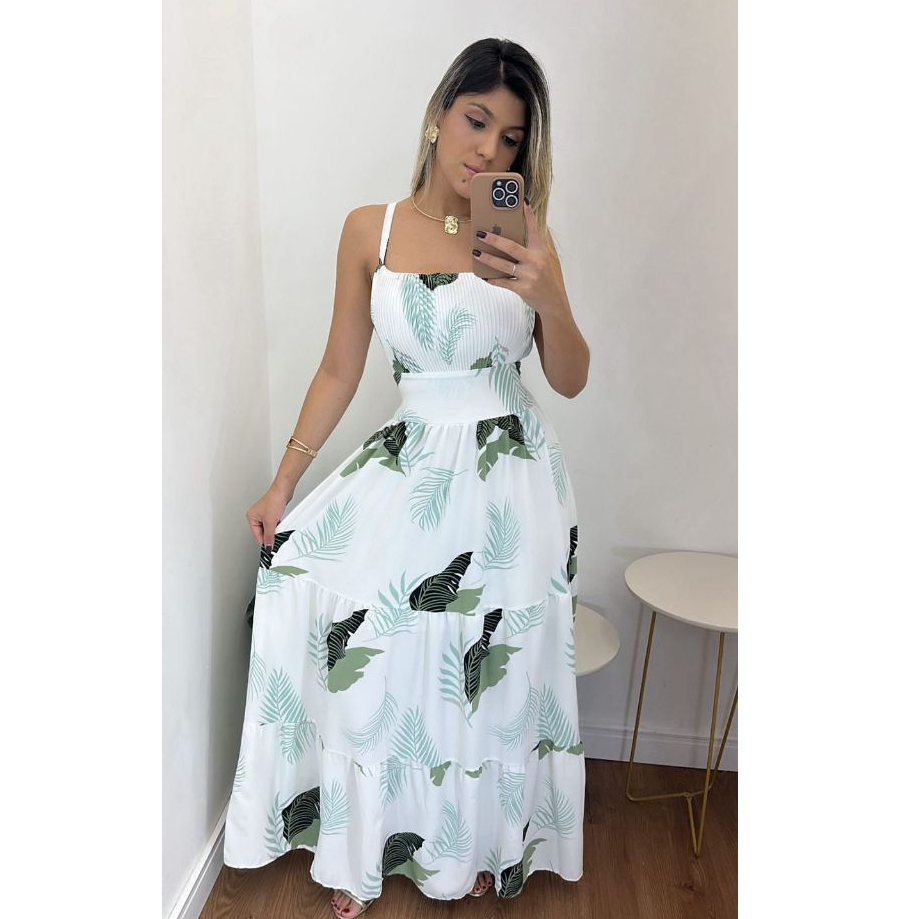 VESTIDO LONGO FEMENINO FRENTE PLISADO TAMANHOS M G
