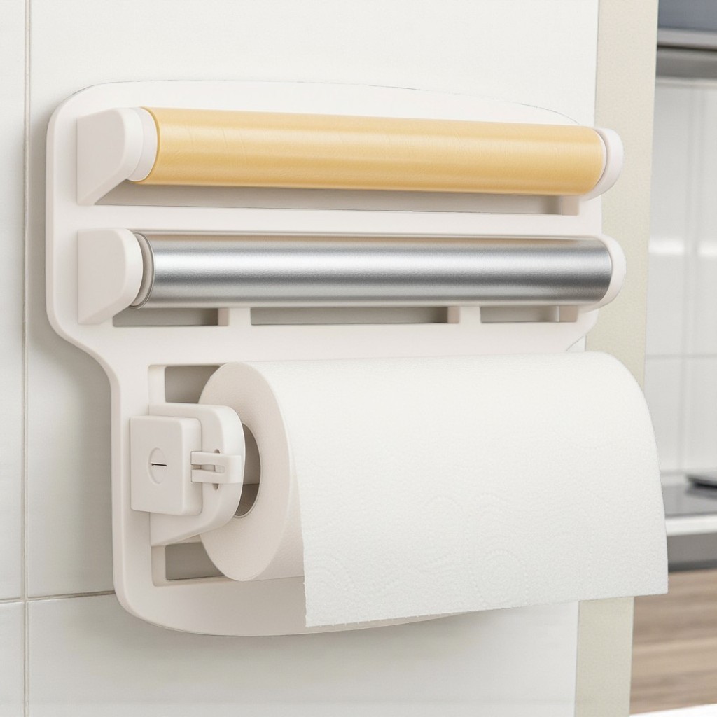 Porta Papel Toalha Triplo Organizador de Rolos para Cozinha– Papel Toalha, Filme Plástico e Alumínio