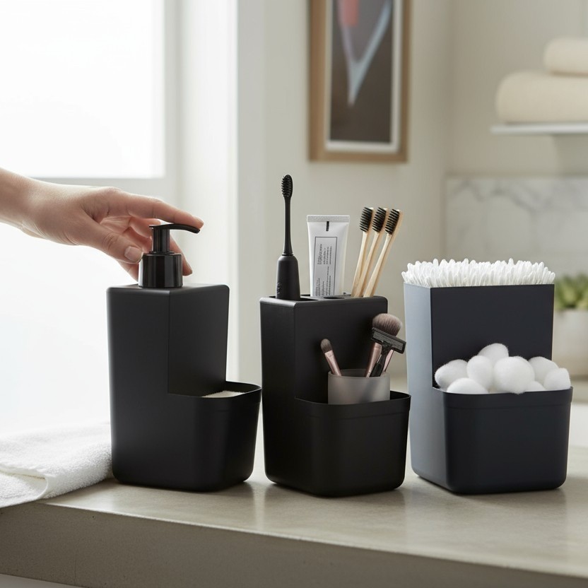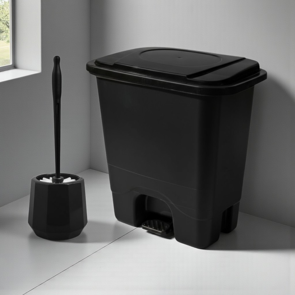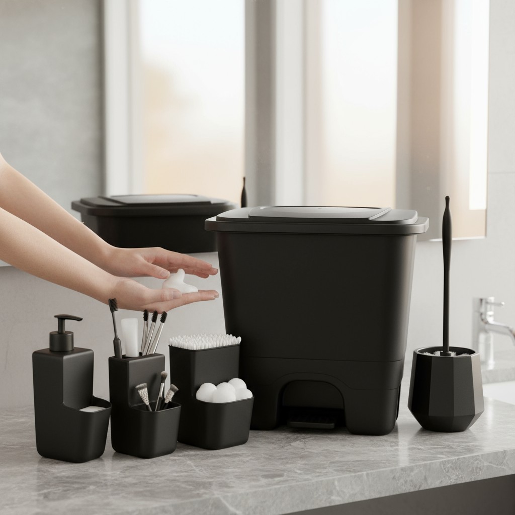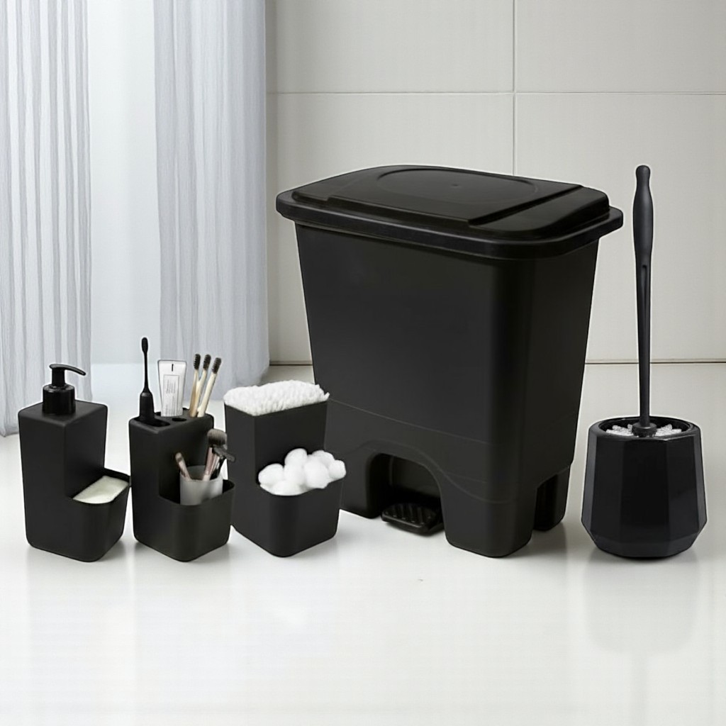 Kit Banheiro 5 Peças – Lixeira 13L Pedal + Escova Sanitária + Dispenser 400ml + Porta Escova + Porta Cotonete