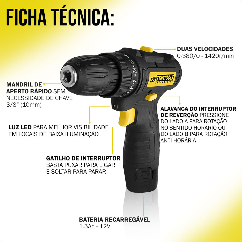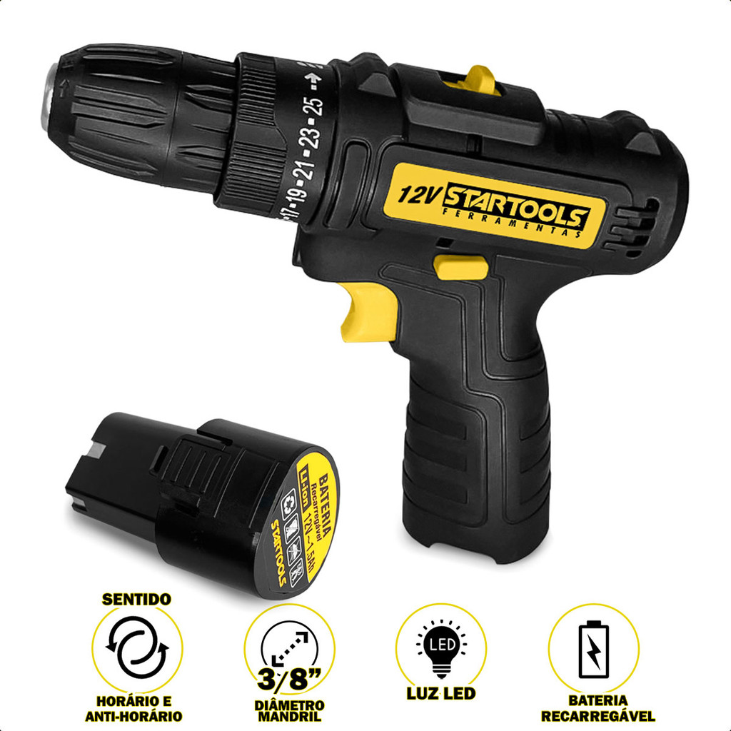 Parafusadeira Recarregavel Furadeira Elétrica 12v Portatil Sem Fio Com Luz Led